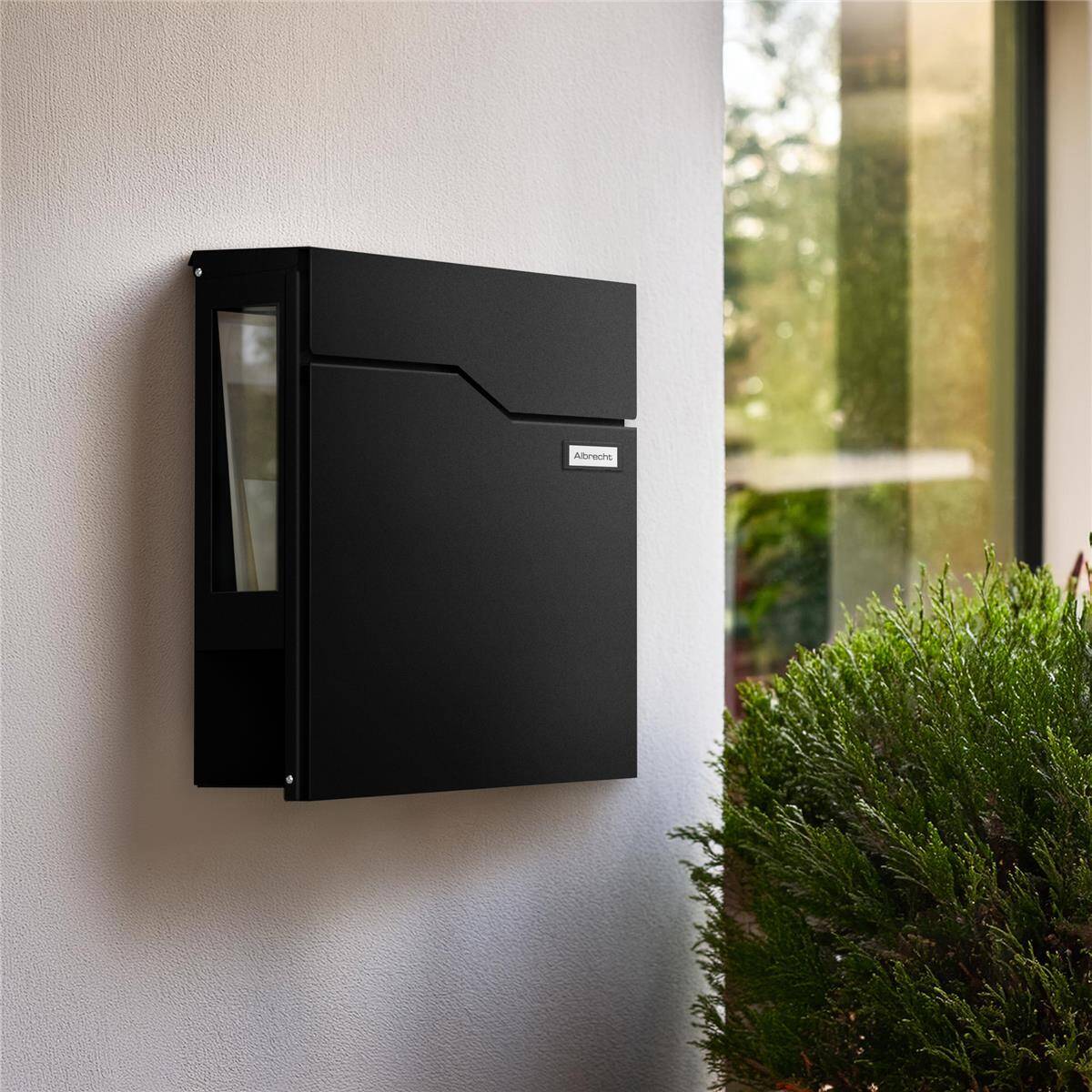 Ein besonderes Merkmal dieses Modells sind die seitlichen Sichtfenster, die auf einen Blick erkennen lassen, ob Post eingetroffen ist. Das integrierte Zeitungsfach ist dezent eingebaut und kann von beiden Seiten befüllt werden.