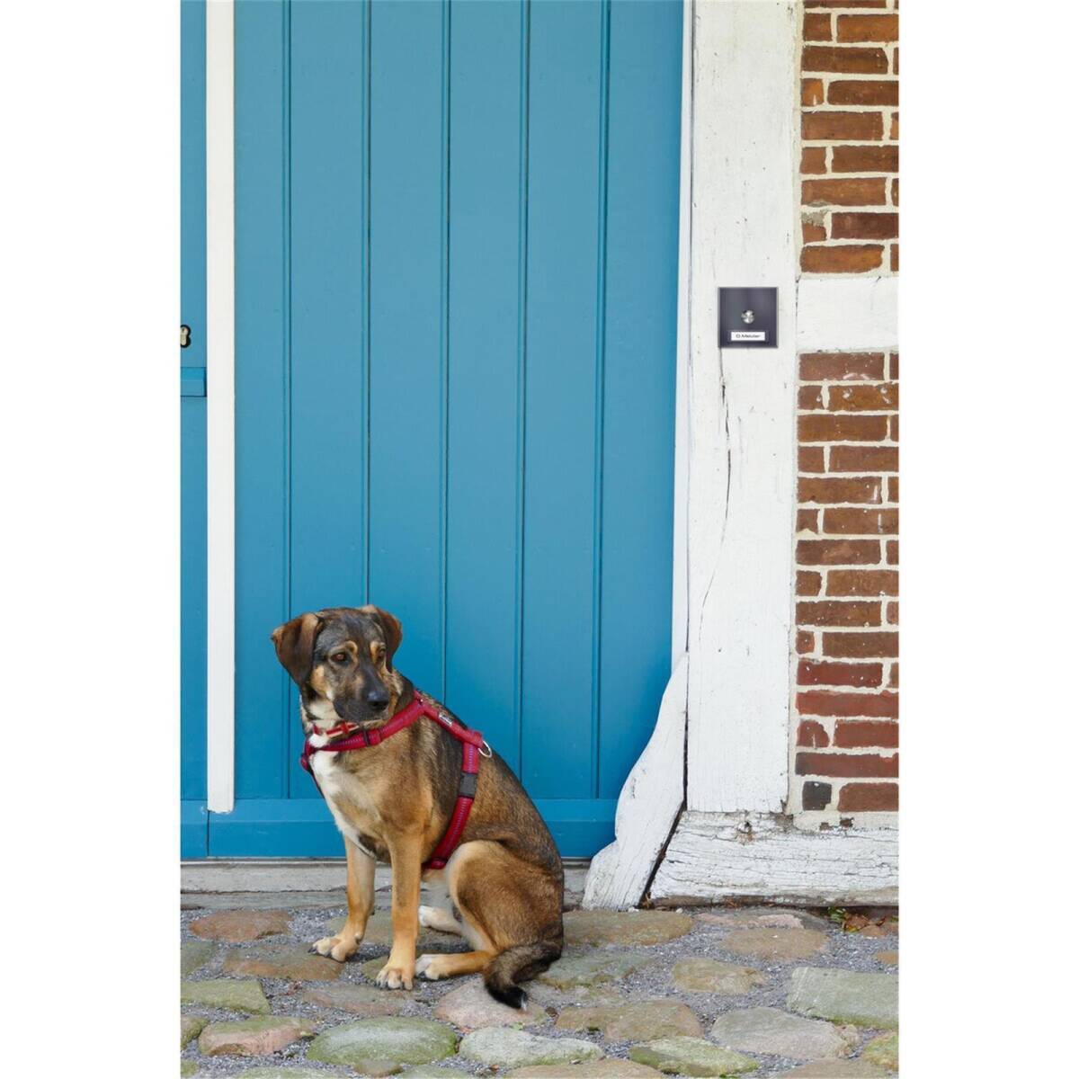 Come standard, si consiglia una connessione senza fili: il trasmettitore integrato nella placca del campanello è alimentato da una batteria (durata della vita 12-15 mesi) – per un'installazione semplice e senza fili. In caso di connessione cablata ai fili del campanello esistenti, è possibile scegliere tra diversi colori per l'illuminazione del pulsante (bianco, blu, rosso, verde).