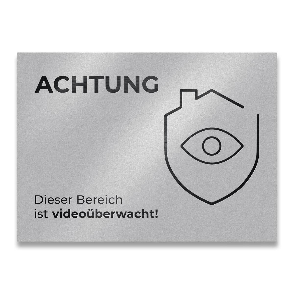 Targhetta per cassetta delle lettere Metzler in acciaio inox con incisione laser "ATTENZIONE Area videosorvegliata!"