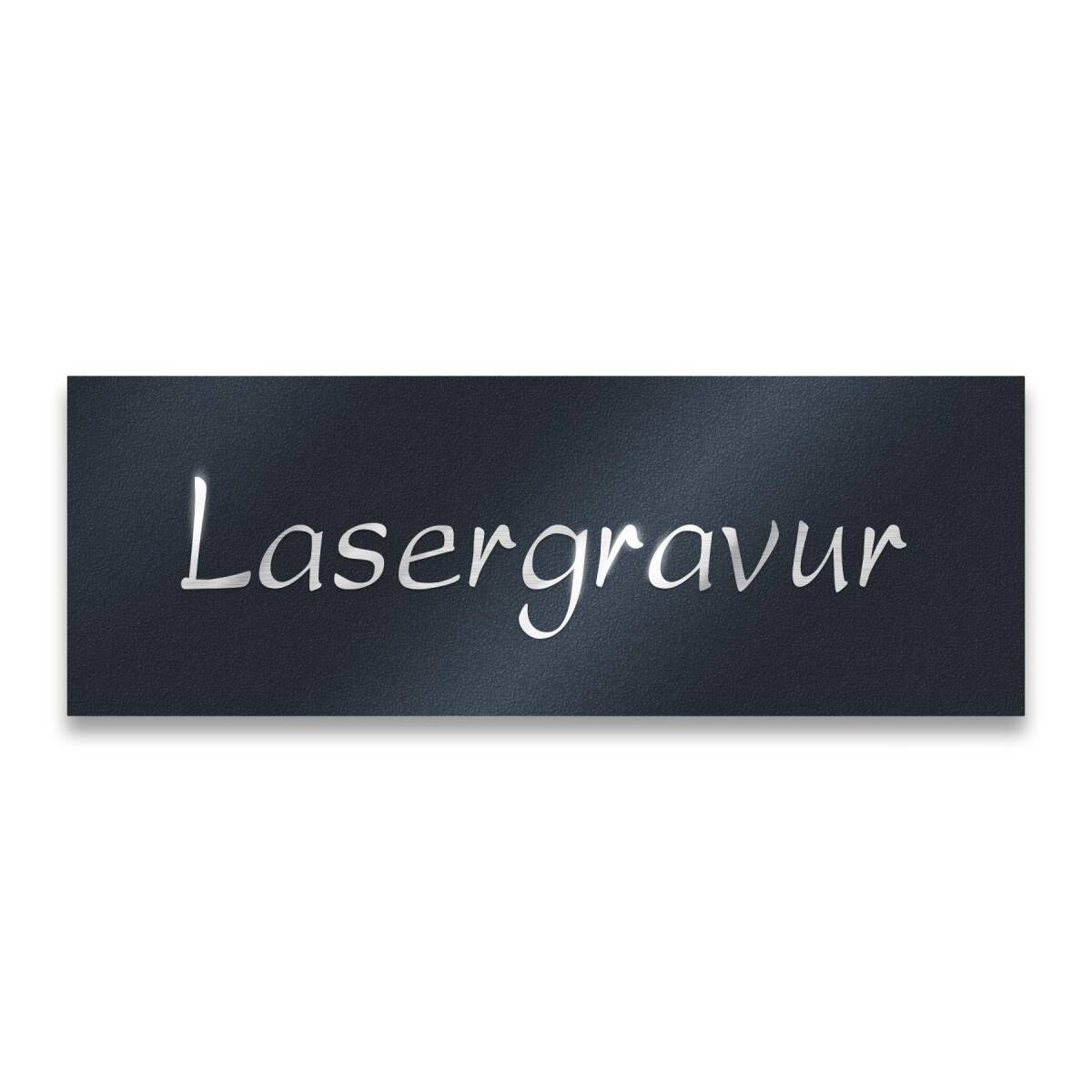 Das Schild gibt es in der Ausführung Edelstahl oder in Anthrazit RAL 7016. Dank des rostfreien Edelstahls und der zusätzlichen Pulverbeschichtung in RAL 7016 ist Ihr Schild absolut witterungsbeständig und sieht auch nach Jahren noch aus wie am ersten Tag. Die individuelle Tiefenlasergravur auf dem Schild besticht durch Klarheit, gute Lesbarkeit und lange Haltbarkeit – ein Verblassen über die Jahre ist ausgeschlossen. Für die Gravur stehen Ihnen 20 ausgesuchte Schriften zur Verfügung.