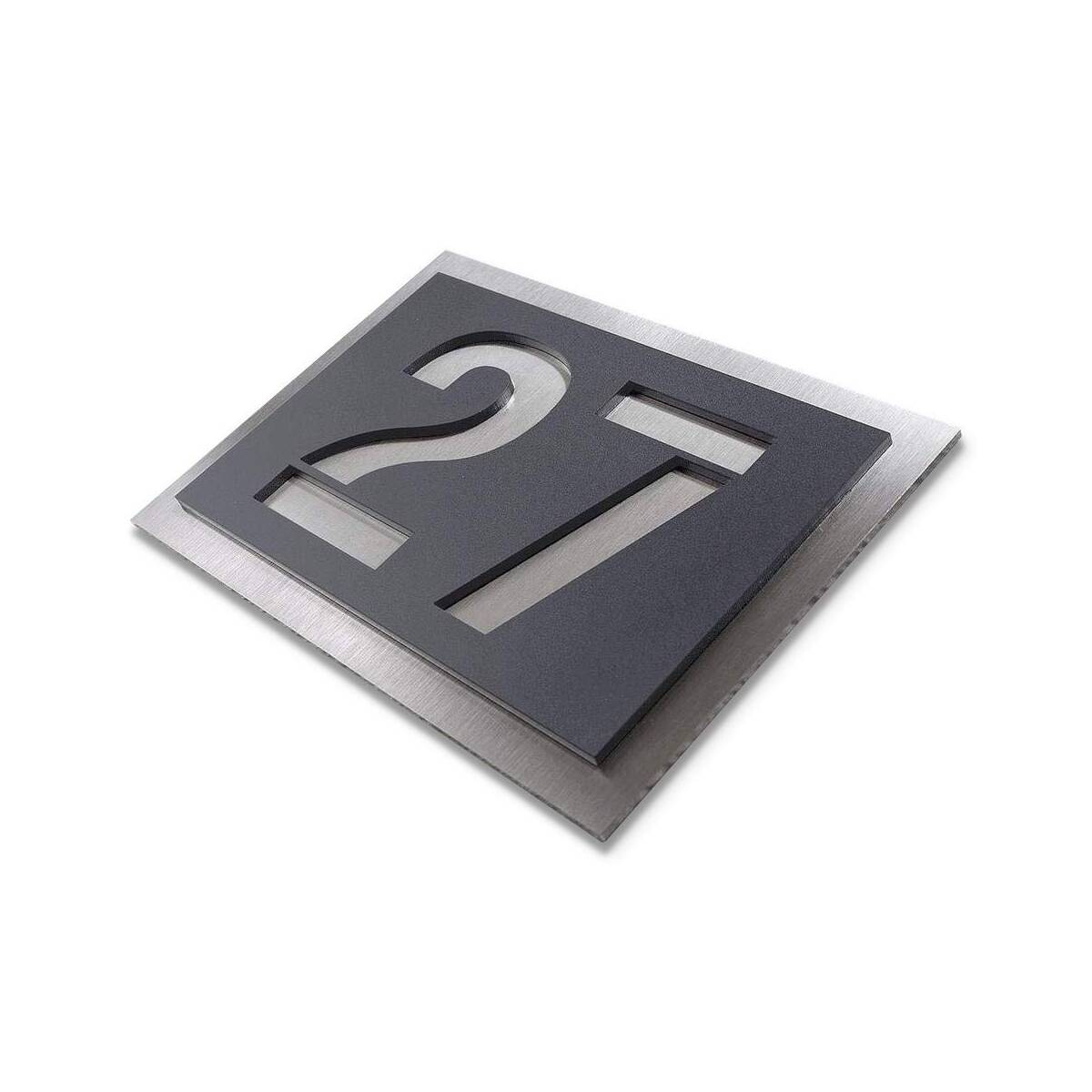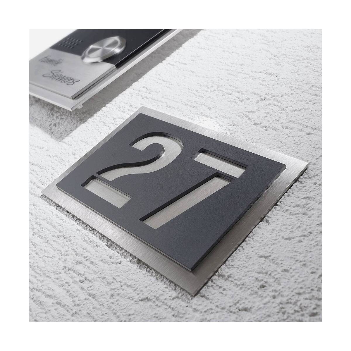 Metzler modernes Hausnummernschild aus Edelstahl und satiniertem Acrylglas