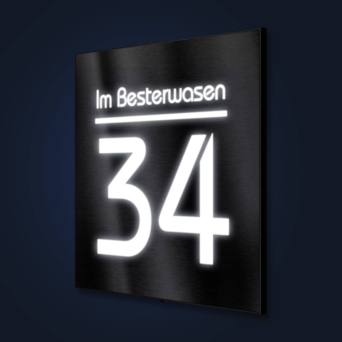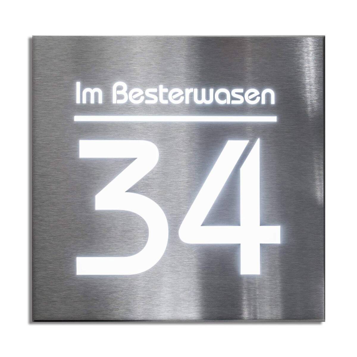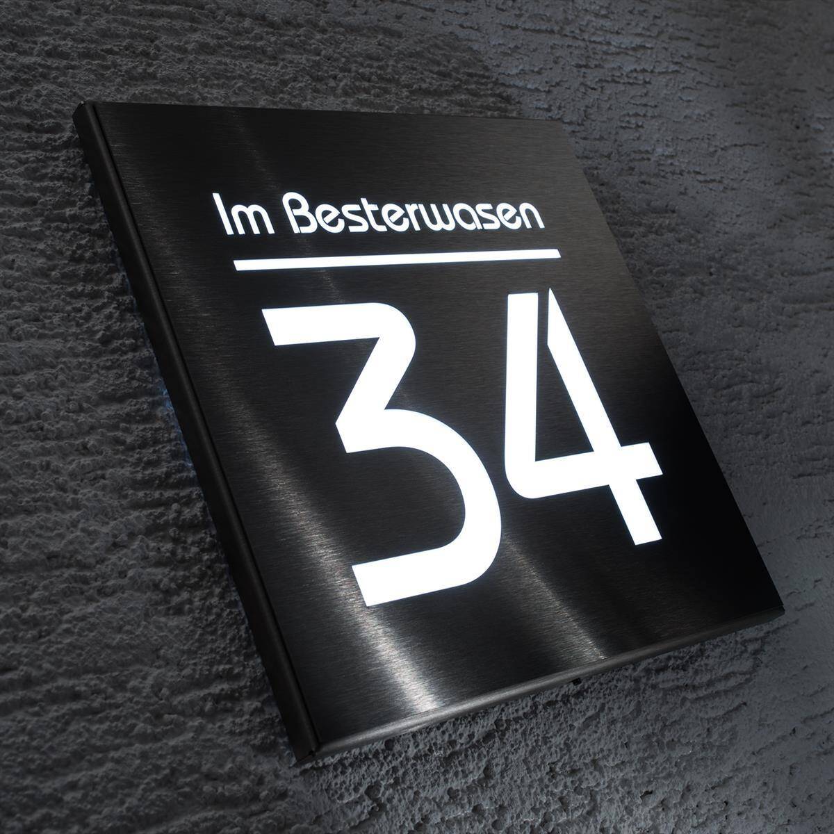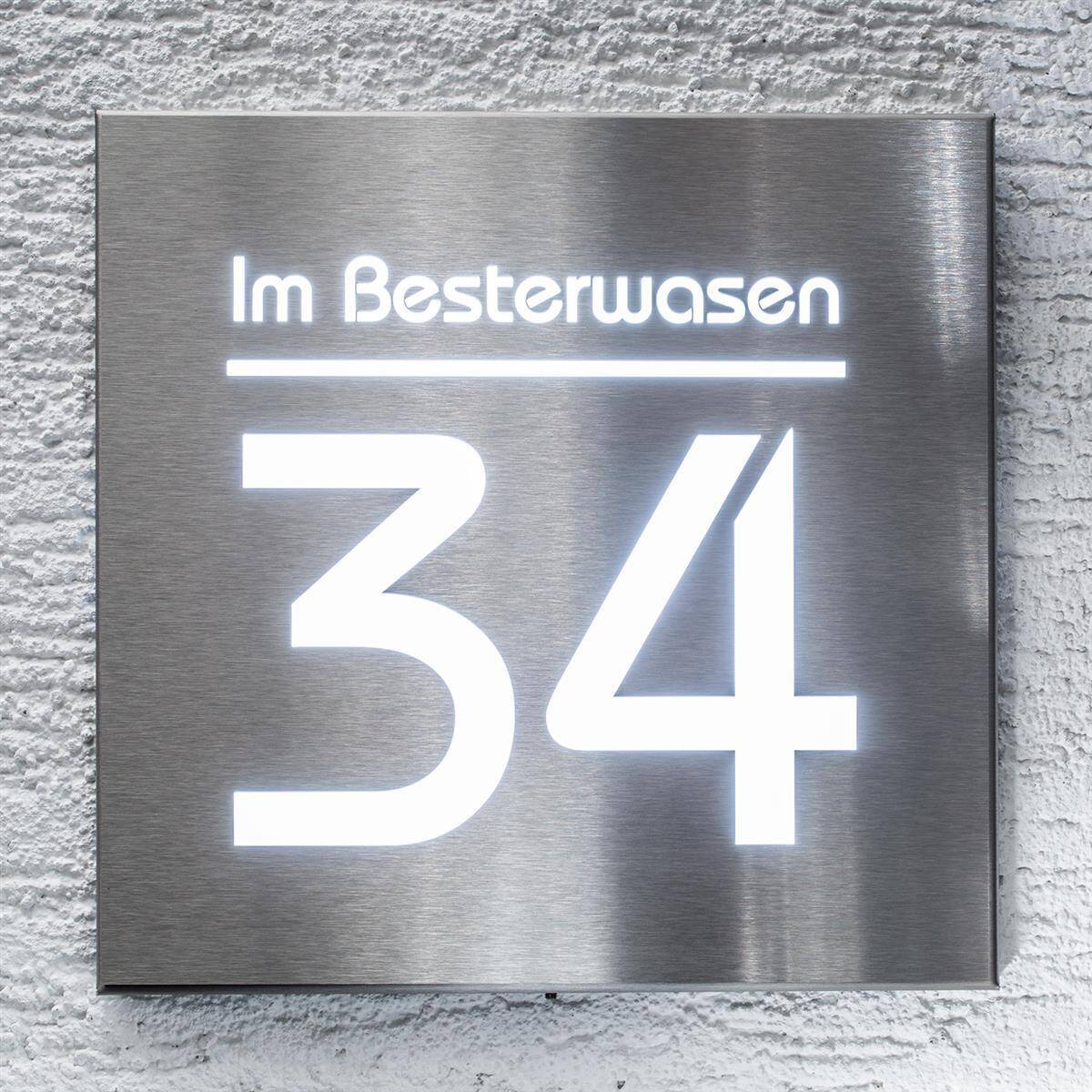 Hausnummernschild mit LED-Beleuchtung aus Edelstahl