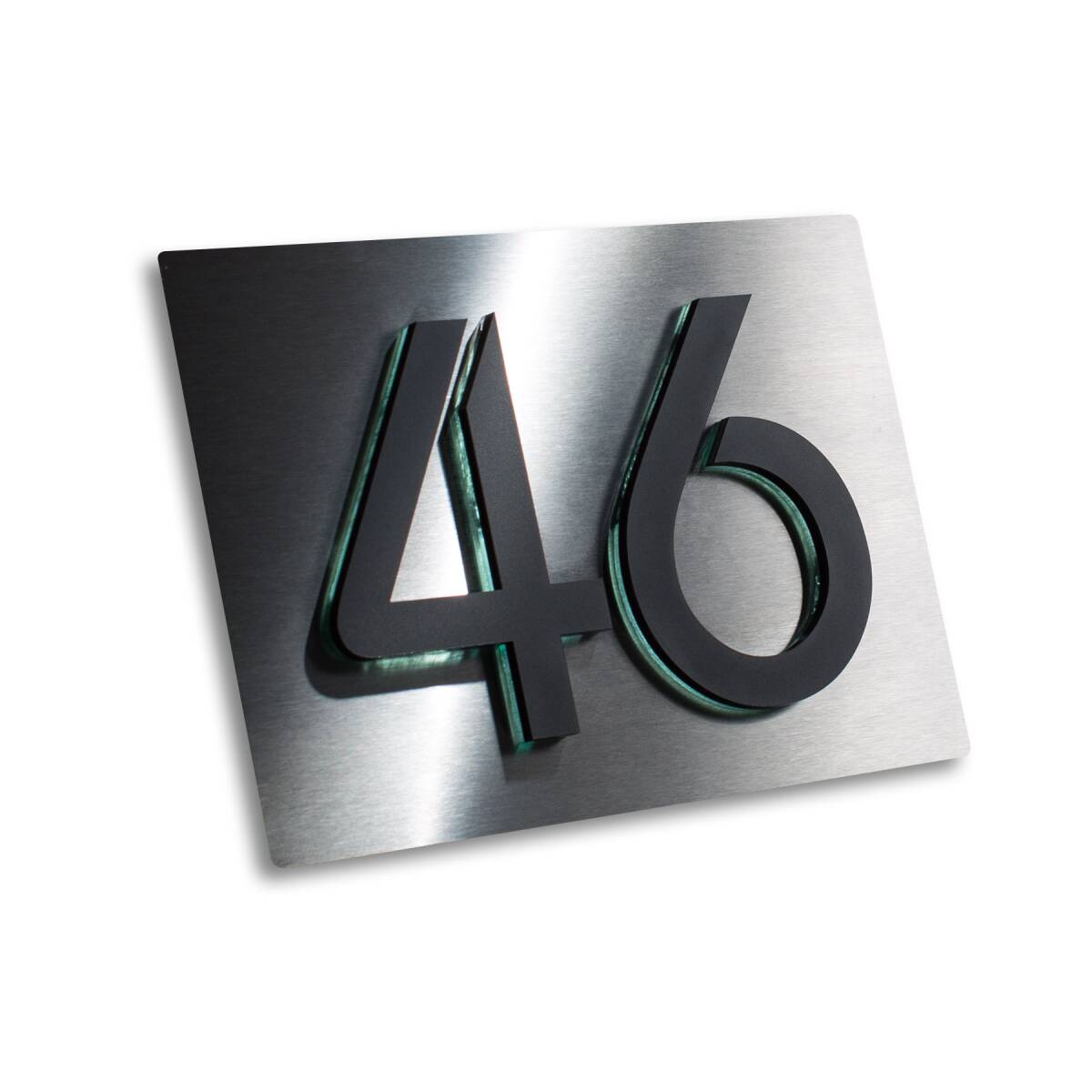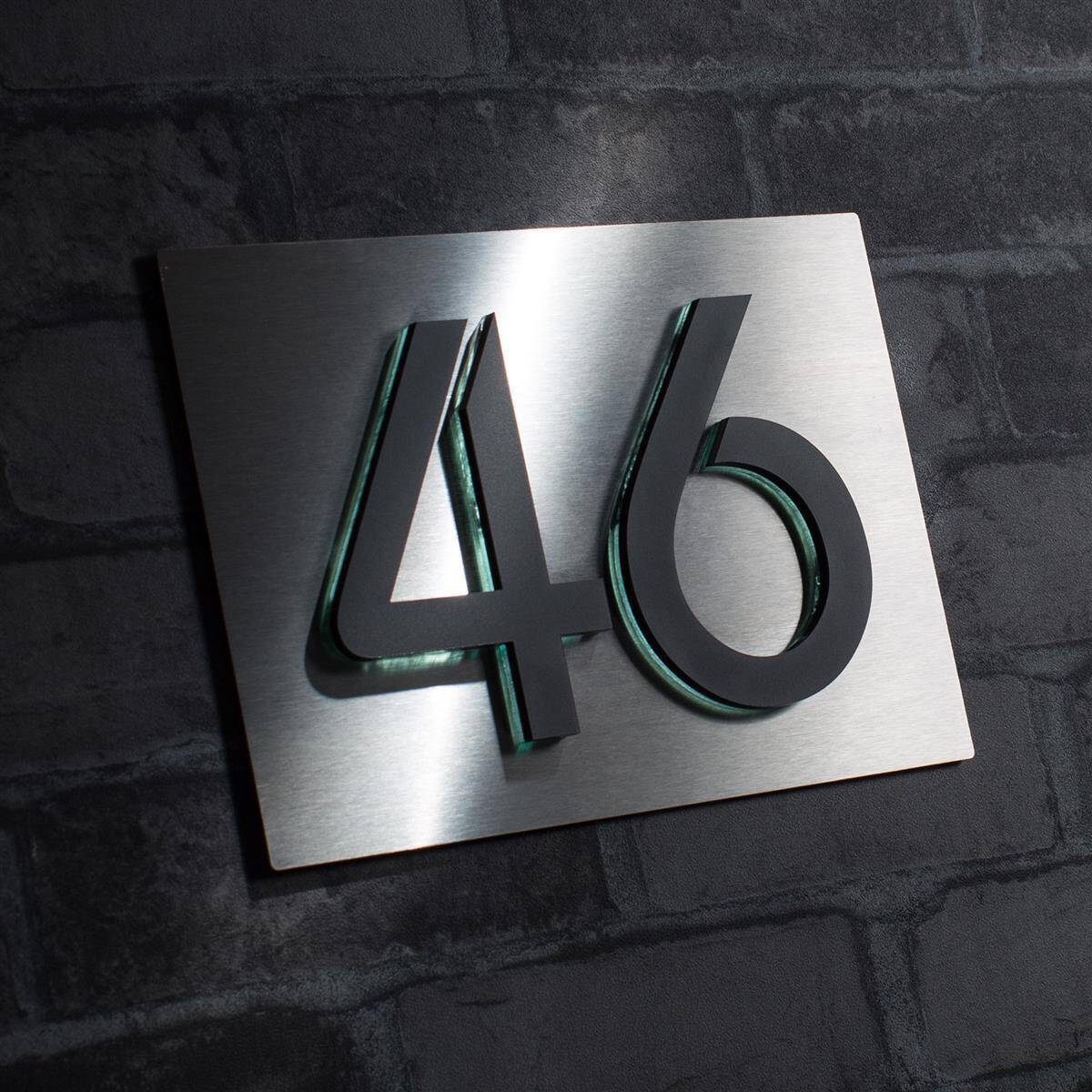 Metzler modernes Hausnummernschild mit 3D-Ziffern aus Edelstahl und Acrylglas