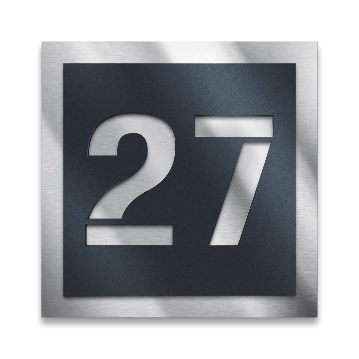 Metzler modernes quadratisches Hausnummernschild aus Edelstahl & Acryl in Anthrazit