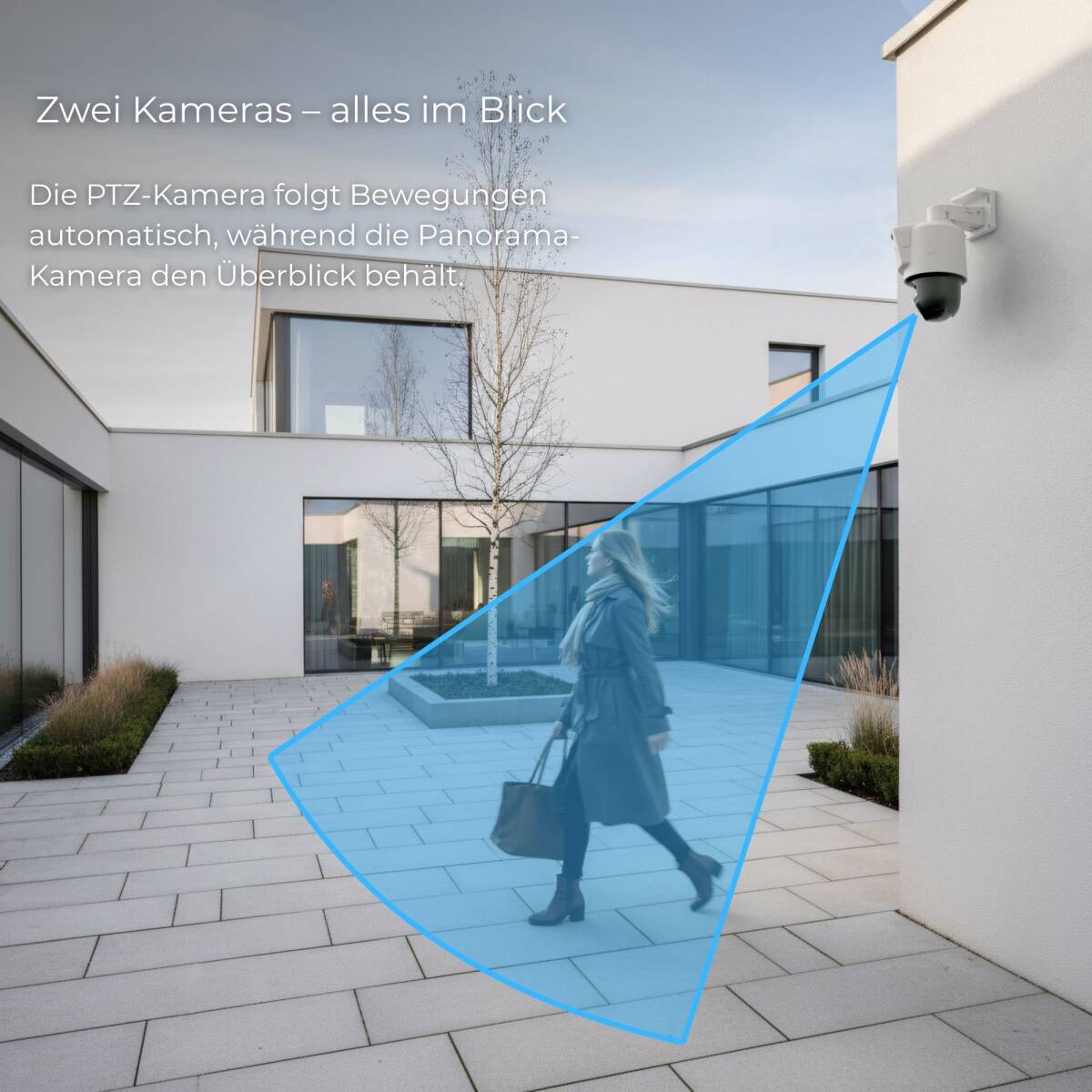 | Objektivtyp | Panoramakanal 2,8 mm, PTZ-Kanal 8 mm |
