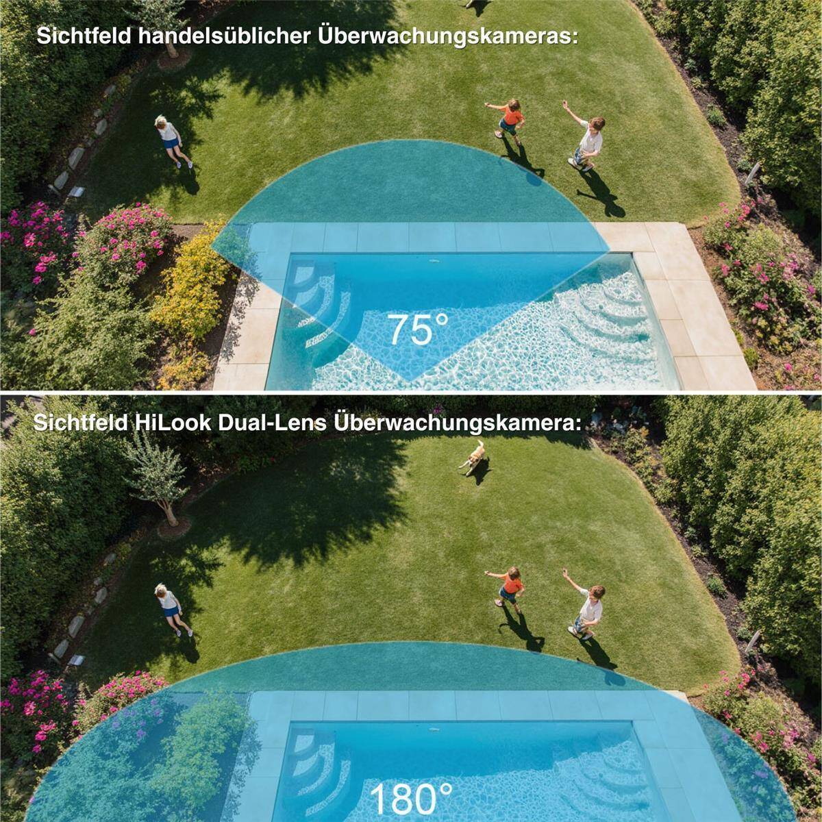 | Ereignisse & Alarme | Bewegungserkennung mit Unterscheidung von Personen/Fahrzeugen, Manipulationsalarm, Alarmaktionen mit Licht/Audio |