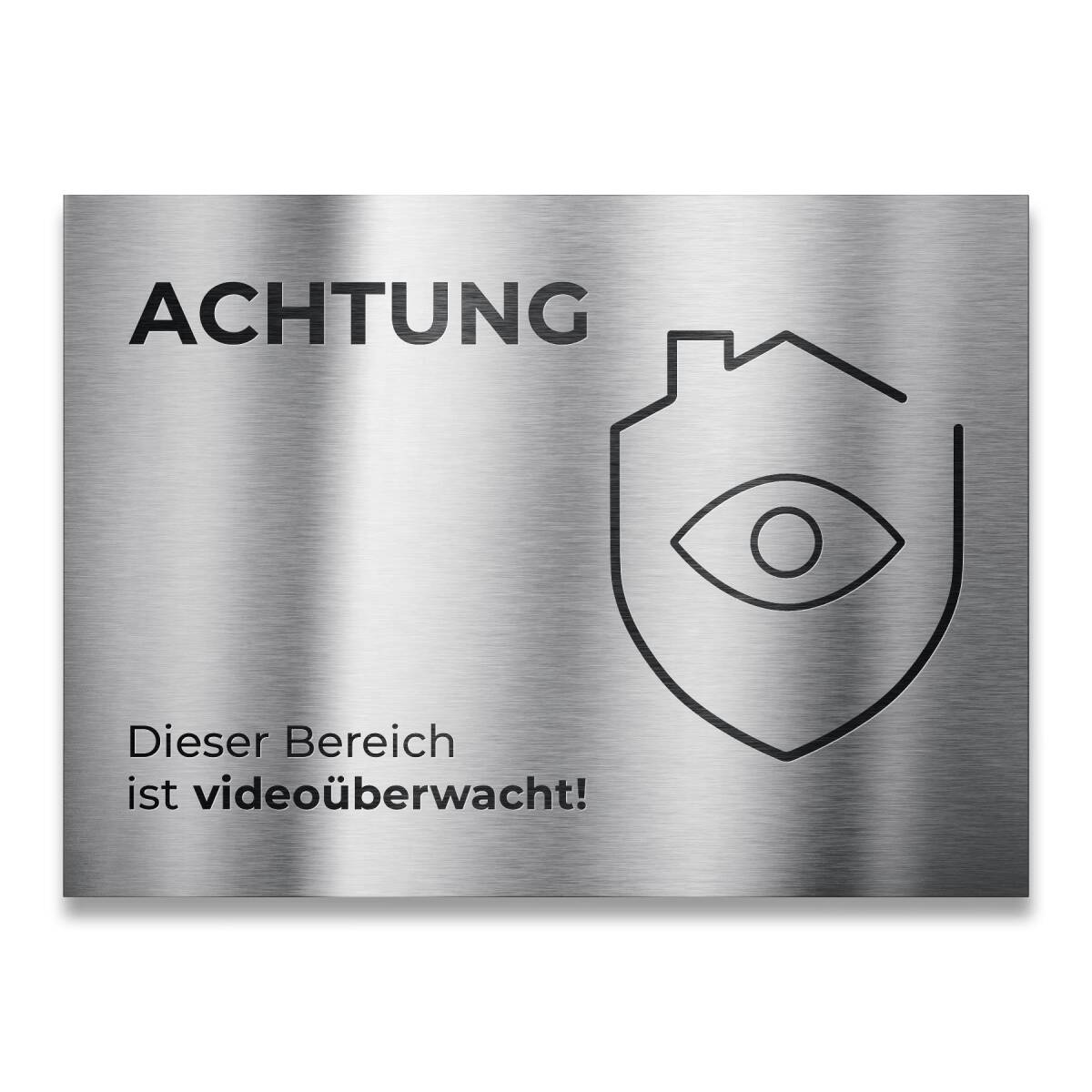 Briefkastenschild mit Lasergravur "ACHTUNG – Dieser Bereich ist videoüberwacht!"
