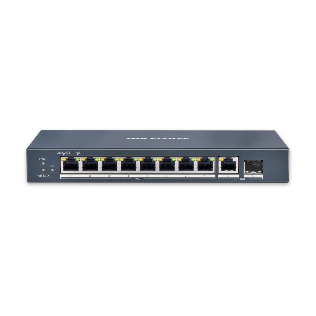 Full Gigabit Performance: 8x 10/100/1000 Mbps PoE-Ports sowie ein dedizierter RJ45- und ein SFP-Glasfaser-Uplink.