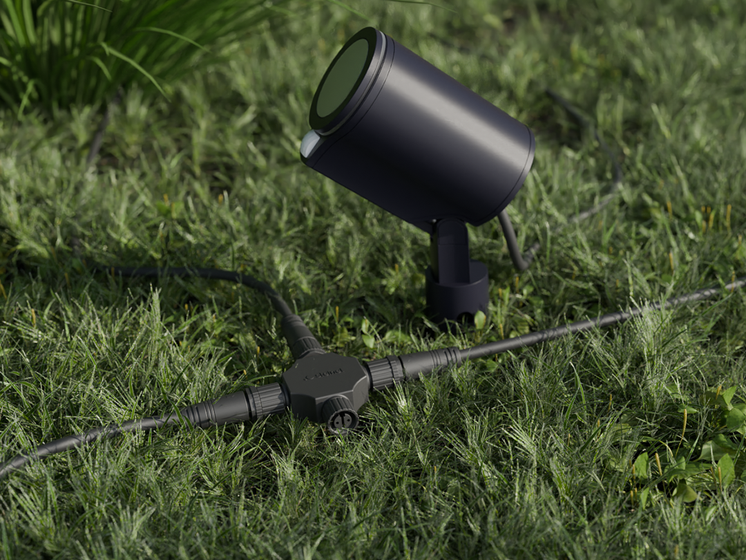 Mit der einfachen Drehverbindung des 24V Garten-Lichtsystems von STEINEL lassen sich Leuchten und Komponenten werkzeuglos verbinden – einfach drehen, anschließen und per Bluetooth koppeln. Die Steuerung erfolgt bequem über die App.