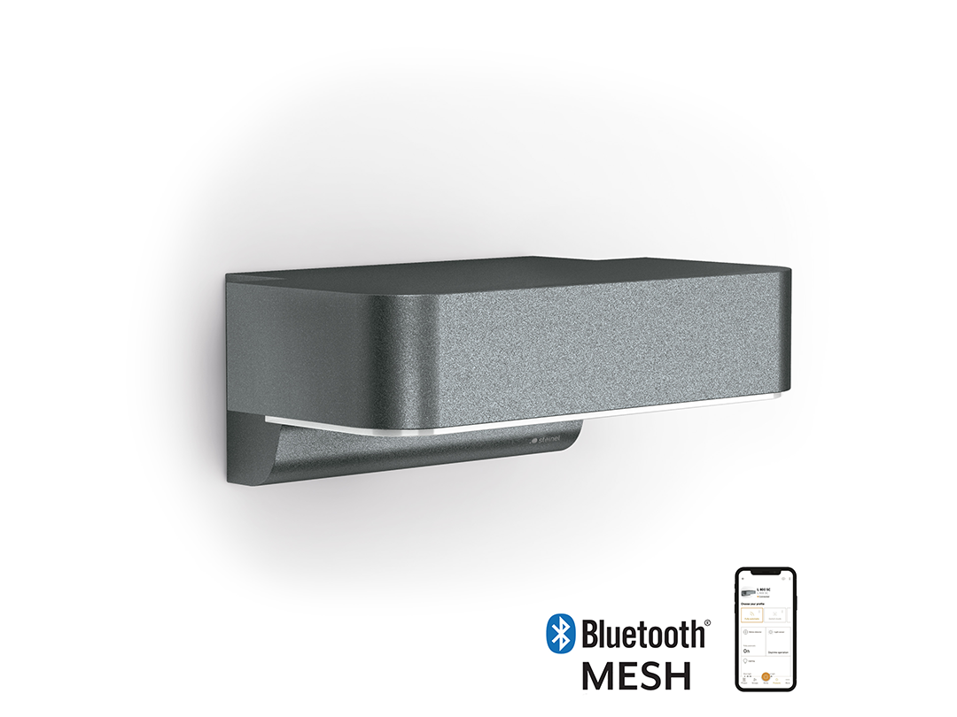 Kabellose Vernetzung via Bluetooth Mesh und einfache Einstellung via STEINEL Connect App, ganz ohne zusĂ€tzliche Bridge: Nachtlicht und Hauptlicht dimmbar (0-100%), Zeitschaltuhr-Funktion fĂŒr Tages- und WochenplĂ€ne, Dauerlicht schaltbar, Leuchtdauer und DĂ€mmerungseinstellung