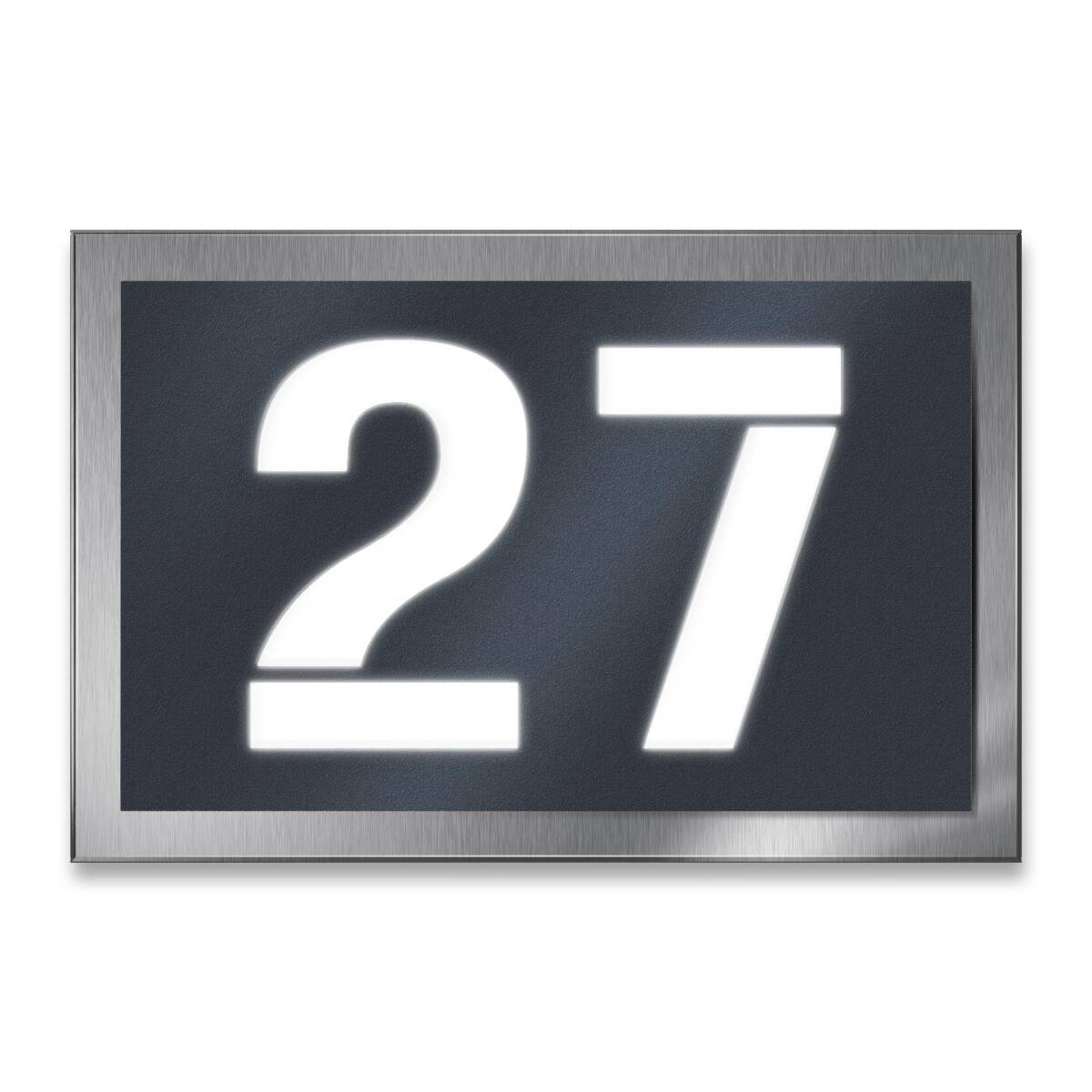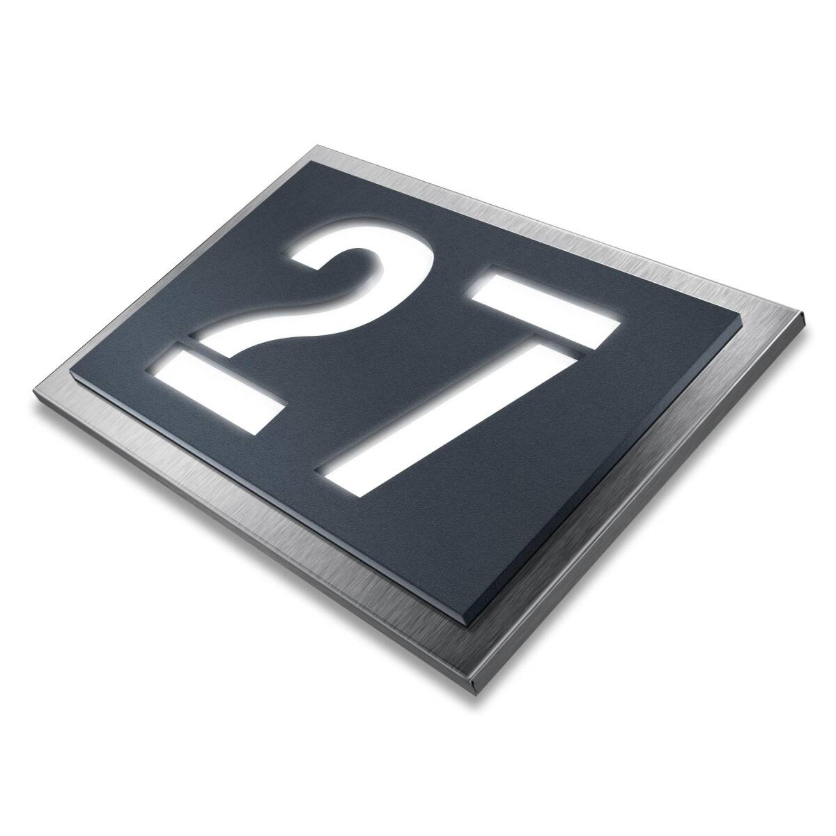 Metzler flaches LED-Hausnummernschild aus V2A Edelstahl in Anthrazit