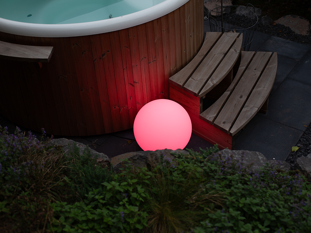 Individuelle Lichtstimmung dank RGBWW-LEDs für echtes weiß (1800-4000 K) und satte Farben. Wählen Sie in der Connect App aus über 16 Mio. Farben oder aus vorgefertigten Beleuchtungs-Szenen, die Ihre Stimmung im Garten und auf der Terrasse am besten wiedergeben.