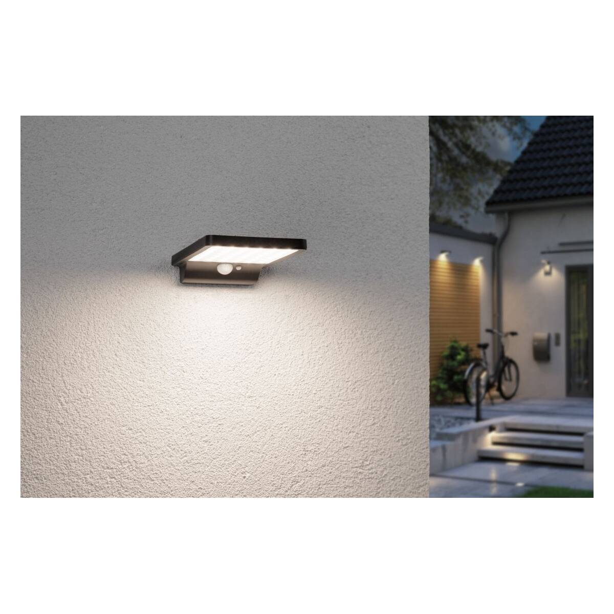 Solar LED Außenwandleuchte Solveig Bewegungsmelder inkl. Bewegungsmelder IP44 3000K 338lm Schwarz