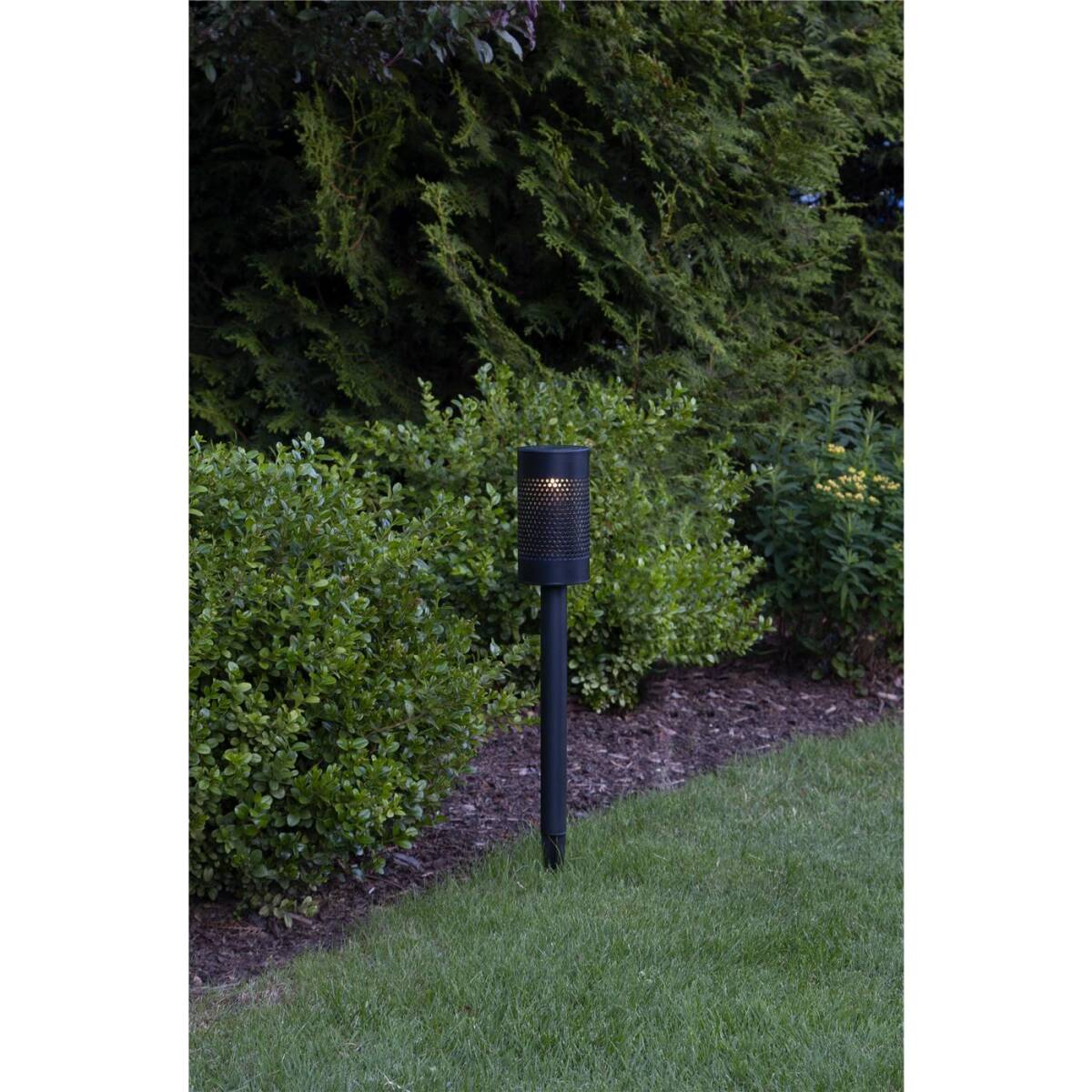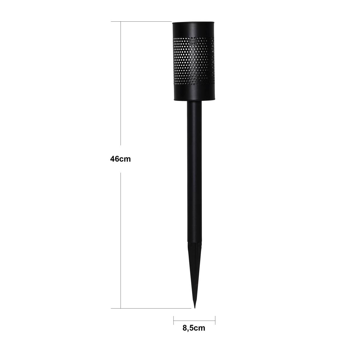Der schlanke, zylindrische Körper aus schwarzem Edelstahl besticht durch seine klare Form: Mit einem Durchmesser von 8,5 cm und einer Höhe von 46 cm wirkt die Leuchte elegant und zeitlos. Besonders raffiniert sind die präzise gestanzten Löcher im Lampenkörper. Sobald die LEDs abends leuchten, entsteht ein faszinierendes Spiel aus Licht und Schatten – sanfte, dekorative Muster werden auf den Boden und die Umgebung geworfen und schaffen eine einladende, fast magische Atmosphäre.