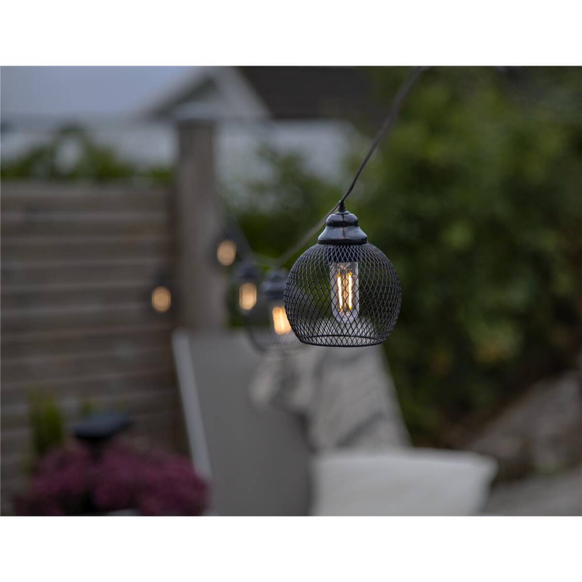 Die Solarlichterkette Sunlight-8 setzt mit ihren acht filigranen Leuchten aus Metallgeflecht stilvolle Akzente im Außenbereich. Warmweißes Licht aus Glühfaden-LEDs sorgt dabei für eine besonders gemütliche Atmosphäre – ideal für Garten, Balkon oder Terrasse. Zwischen den Leuchten liegt jeweils ein Meter Abstand, was ein harmonisches Gesamtbild ergibt. Dank des 1 m langen Kabels zwischen der letzten Leuchte und dem Solarpanel lässt sich dieses flexibel dort platzieren, wo es genügend Sonnenlicht bekommt. Die passende Batterie ist im Lieferumfang enthalten.