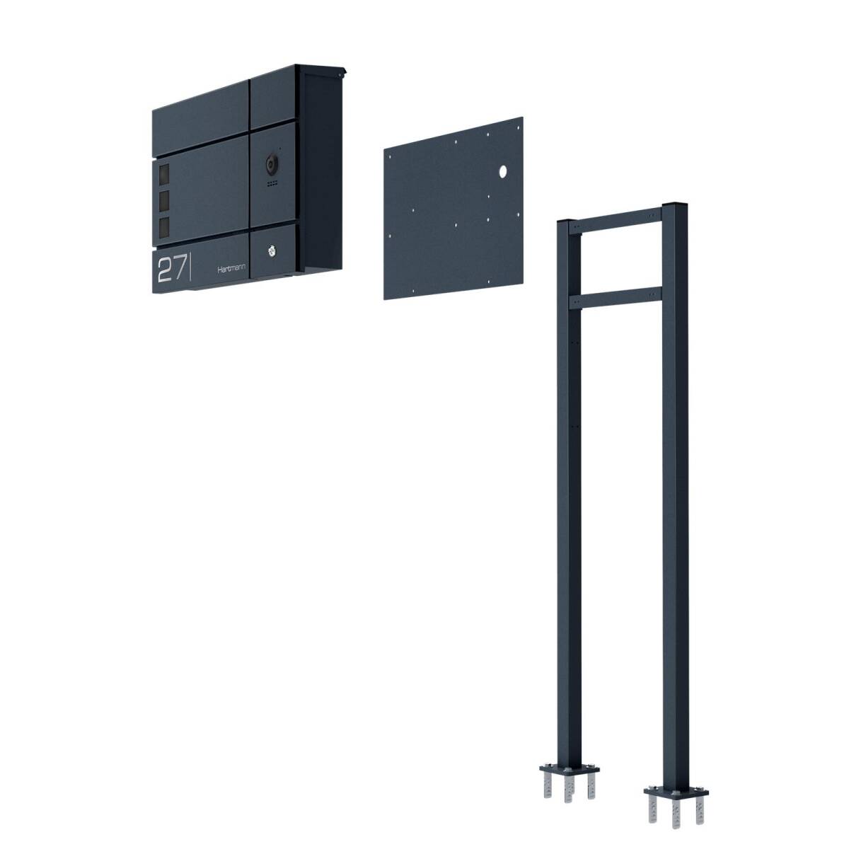 Die funktionale Adapterplatte verbindet den Briefkasten mit Videosprechanlage mit dem Standfuß und sorgt für einen sicheren Halt. Die aus Edelstahl bestehende Platte wird zur zusätzlichen Witterungsbeständigkeit in Anthrazit RAL7016 pulverbeschichtet.
