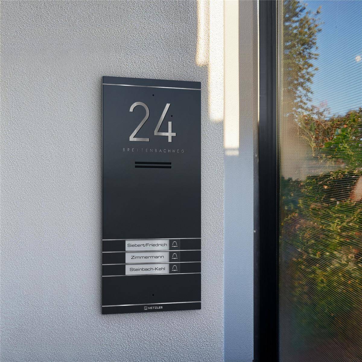 Die Sprechanlage von Metzler mit Live-Audio, 2 Türöffner-Relais und vielen smarten Zusatzfunktionen für das Zuhause von morgen. Gefertigt aus massivem Edelstahl. Gebaut für die Ewigkeit.
