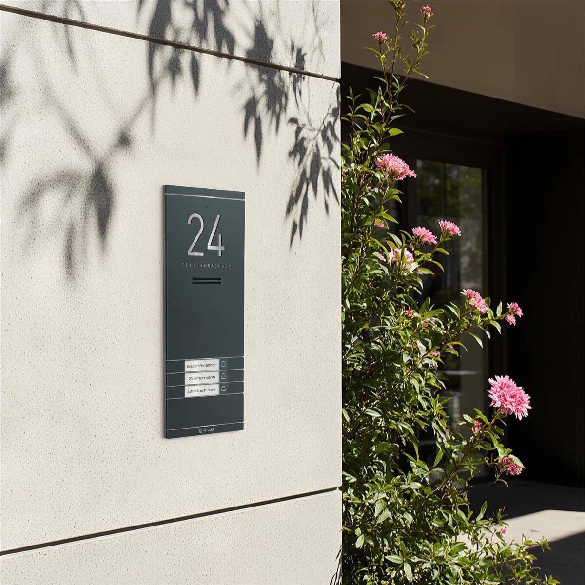 - Drei Klingeltaster mit austauschbaren Papiereinlegern