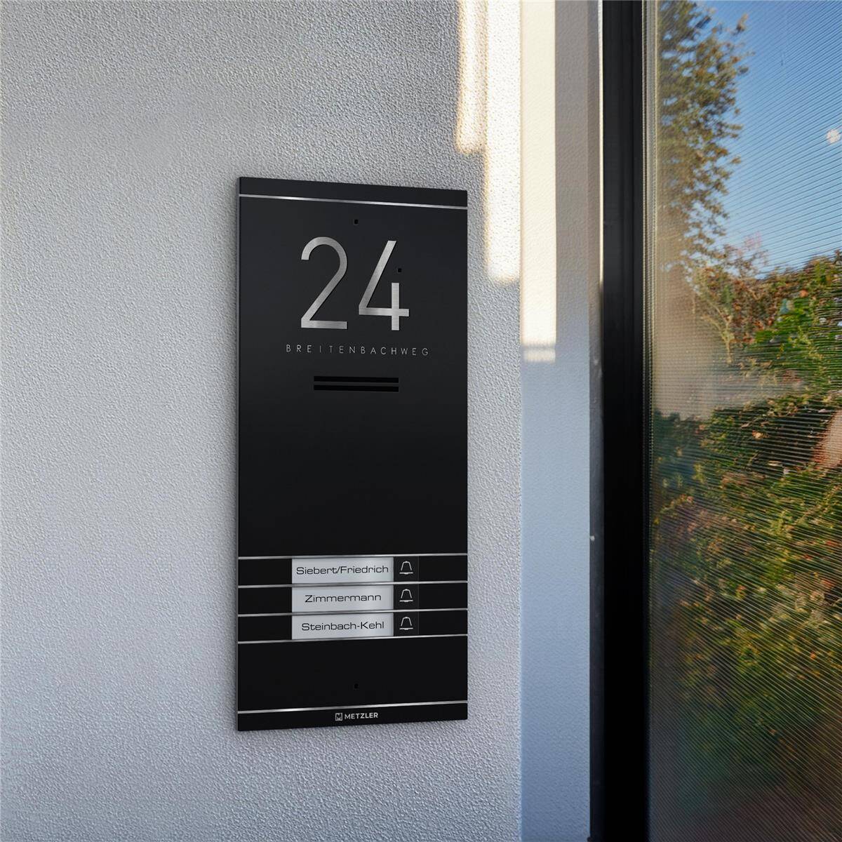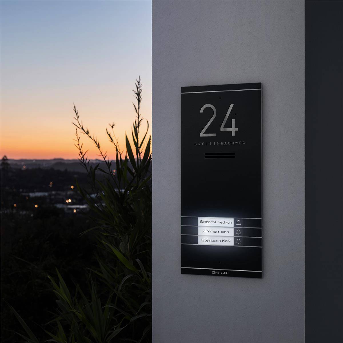 Die Sprechanlage von Metzler mit Live-Audio, 2 Türöffner-Relais und vielen smarten Zusatzfunktionen für das Zuhause von morgen. Gefertigt aus massivem Edelstahl. Gebaut für die Ewigkeit.
