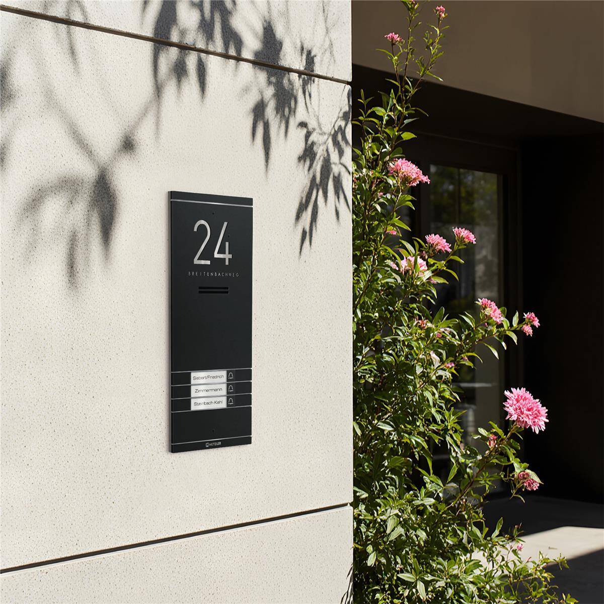 - Drei Klingeltaster mit austauschbaren Papiereinlegern