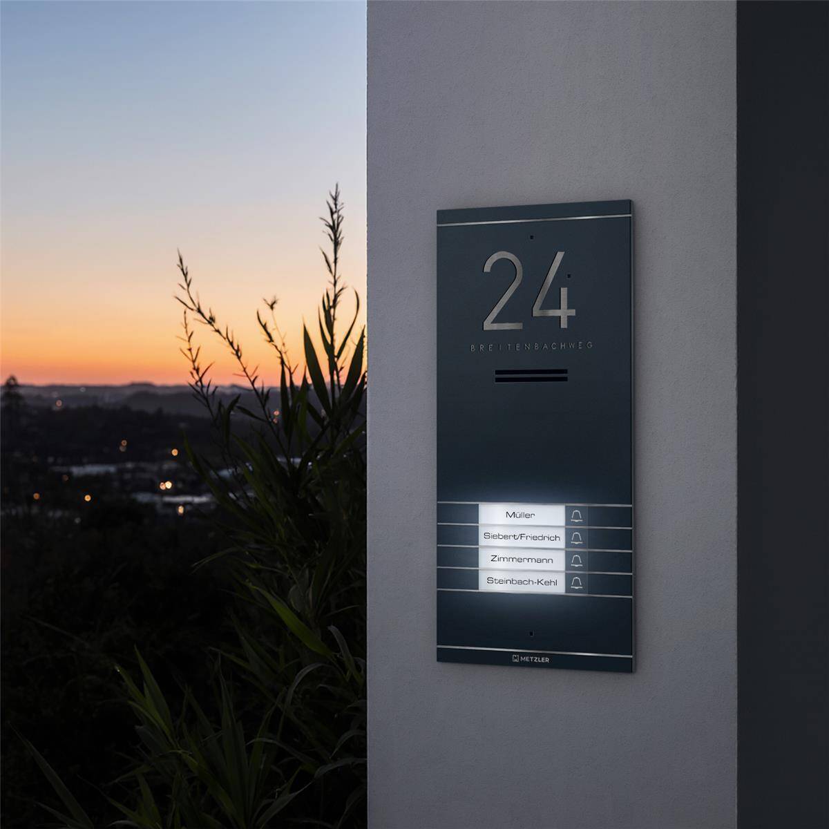 Die Sprechanlage von Metzler mit Live-Audio, 2 Türöffner-Relais und vielen smarten Zusatzfunktionen für das Zuhause von morgen. Gefertigt aus massivem Edelstahl. Gebaut für die Ewigkeit.