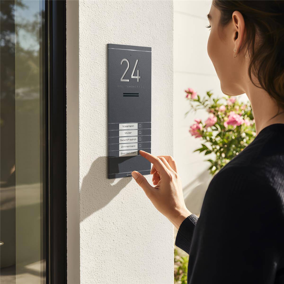 - Fünf Klingeltaster mit austauschbaren Papiereinlegern
