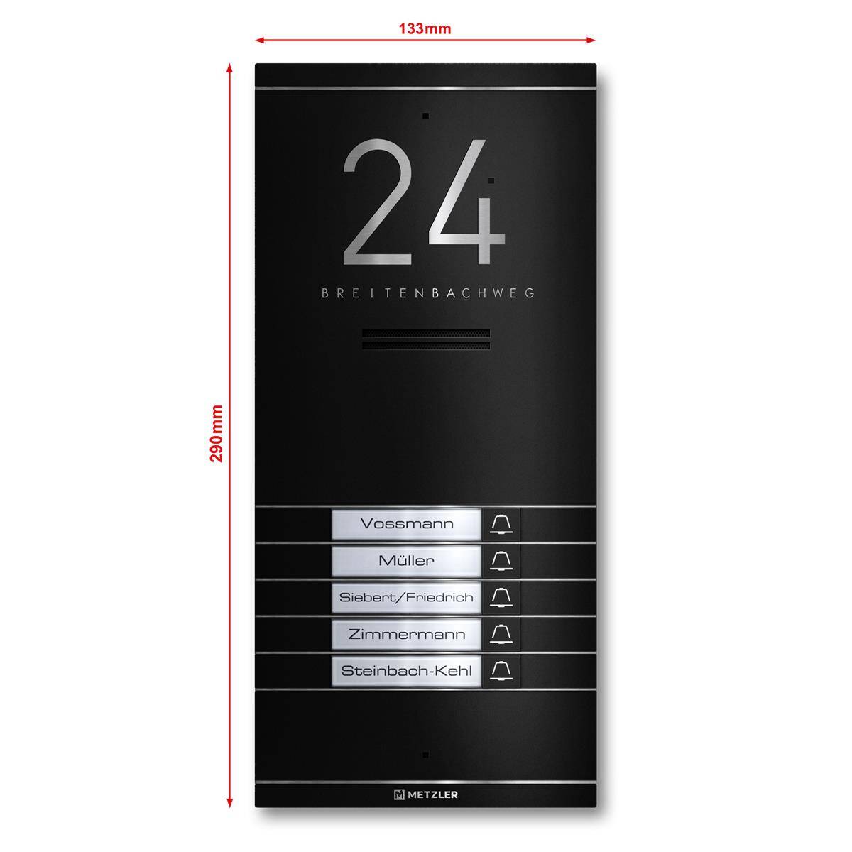 - Fünf Klingeltaster mit austauschbaren Papiereinlegern