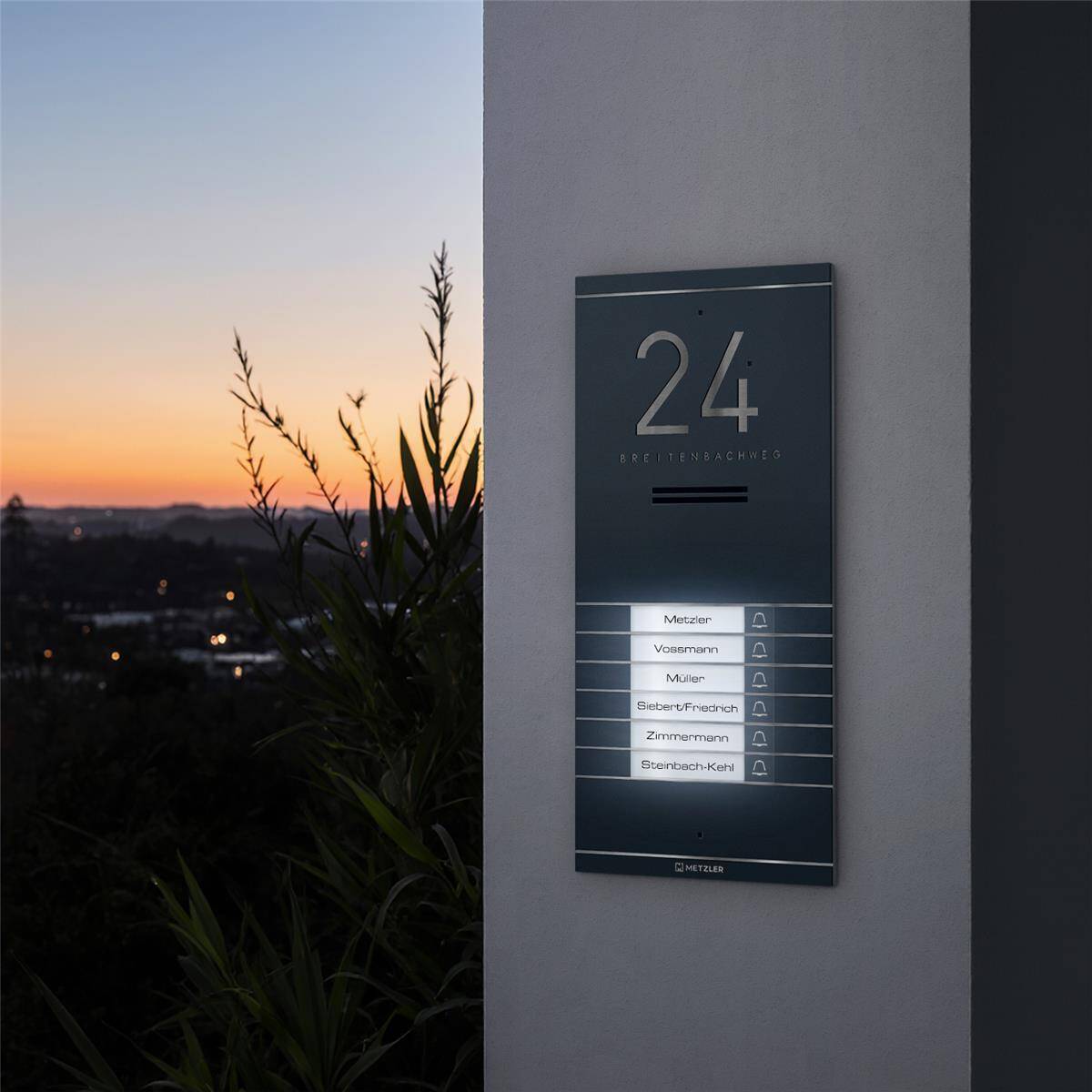 Die Sprechanlage von Metzler mit Live-Audio, 2 Türöffner-Relais und vielen smarten Zusatzfunktionen für das Zuhause von morgen. Gefertigt aus massivem Edelstahl. Gebaut für die Ewigkeit.