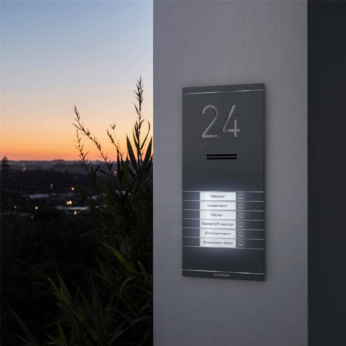 Die Sprechanlage von Metzler mit Live-Audio, 2 Türöffner-Relais und vielen smarten Zusatzfunktionen für das Zuhause von morgen. Gefertigt aus massivem Edelstahl. Gebaut für die Ewigkeit.