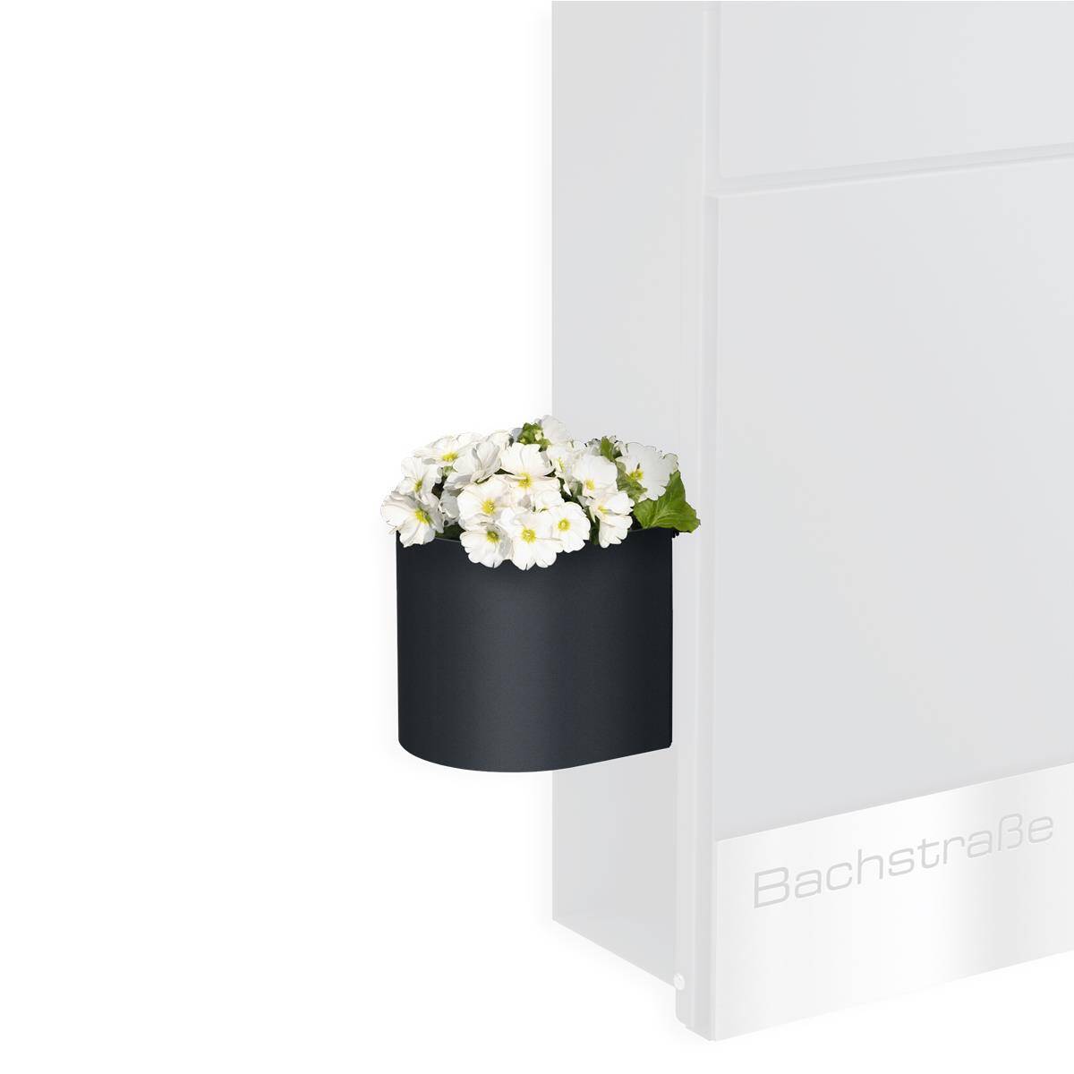 Verleihen Sie Ihrem Briefkasten eine persönliche und stilvolle Note mit dem Cubic R Blumenkasten. Das halbrunde Design setzt elegante Akzente und bietet Platz für kleine Pflanzen oder dekorative Elemente, die Ihren Eingangsbereich aufwerten.