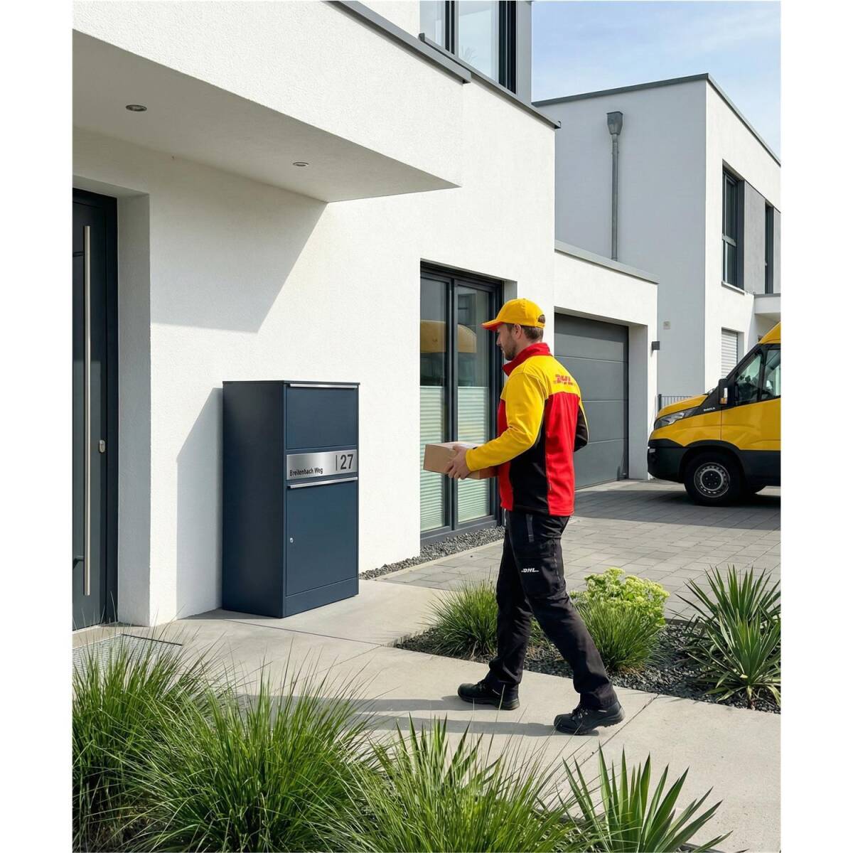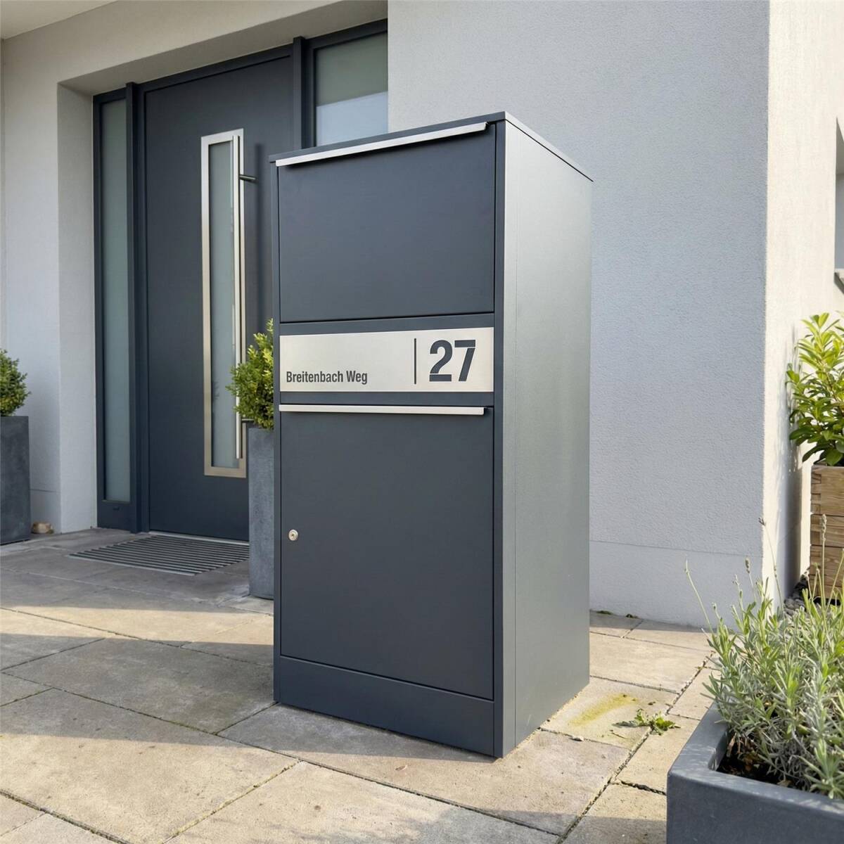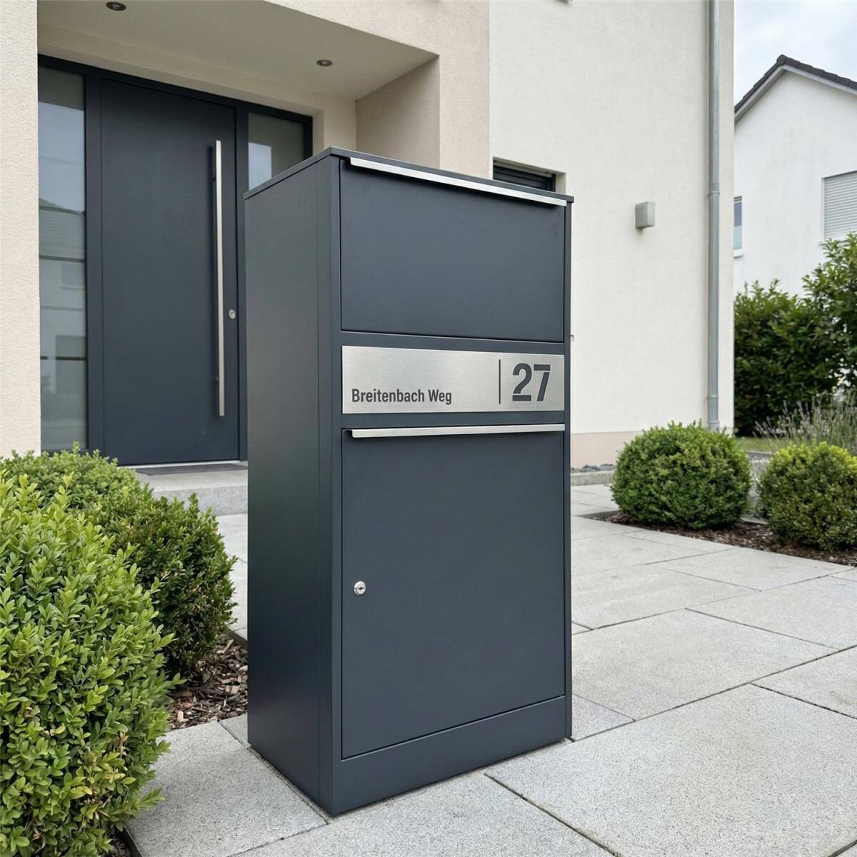 La boîte aux lettres et à colis est la solution parfaite pour vos livraisons des lettres et des paquets. La livraison se passe sans contact et vingt-quatre heures par vingt-quatre. Grâce au grand volume, la boîte peut contenir plusieurs colis en même temps – rendant des voyages au bureau de poste inutiles.