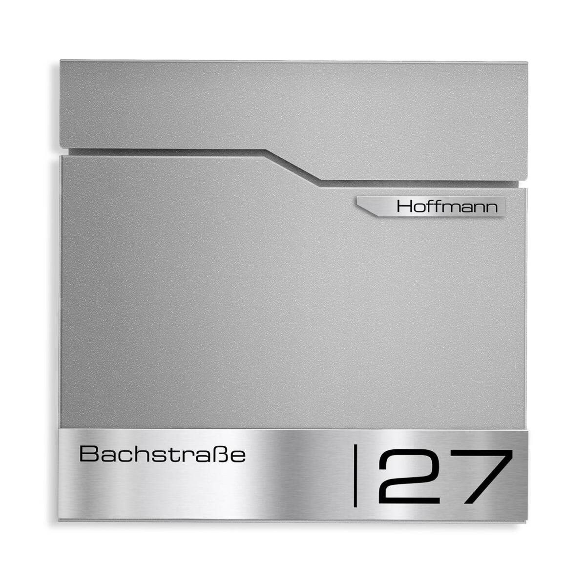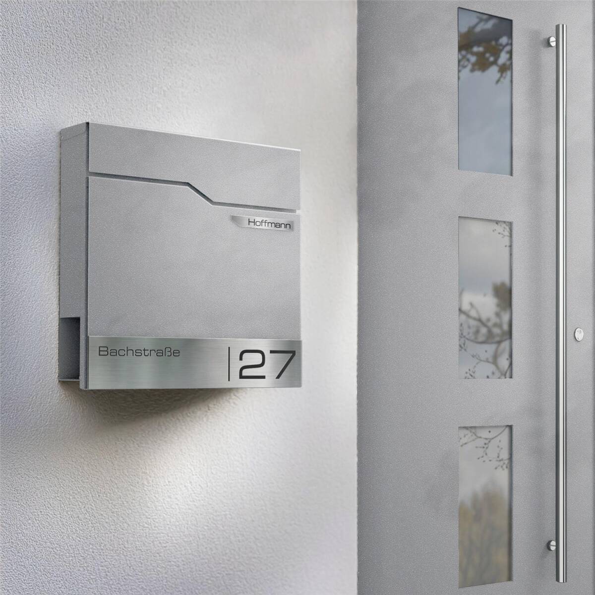 Cette boîte aux lettres de la série Hoffmann est fabriquée en acier massif de haute qualité. Pour la rendre encore plus résistante aux intempéries, l‘acier est revêtu minutieusement de poudre en RAL 9007 aluminium gris après la gravure laser de nom de rue et numéro de maison. Il est donc garanti que votre boîte aux lettres ne doit craindre ni le vent, ni la pluie.
