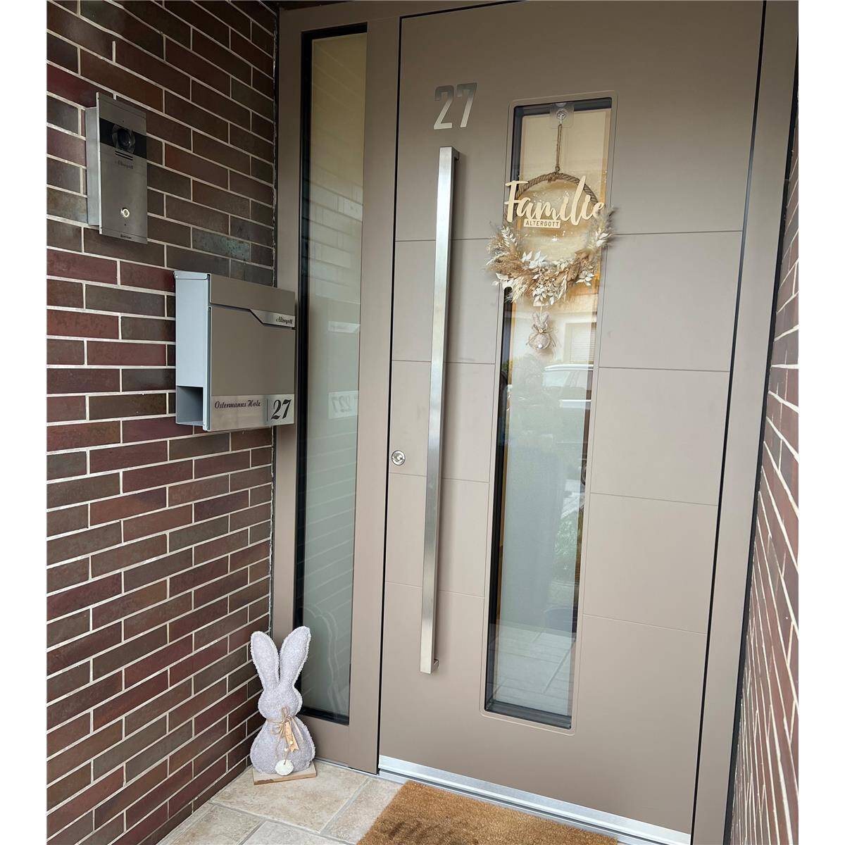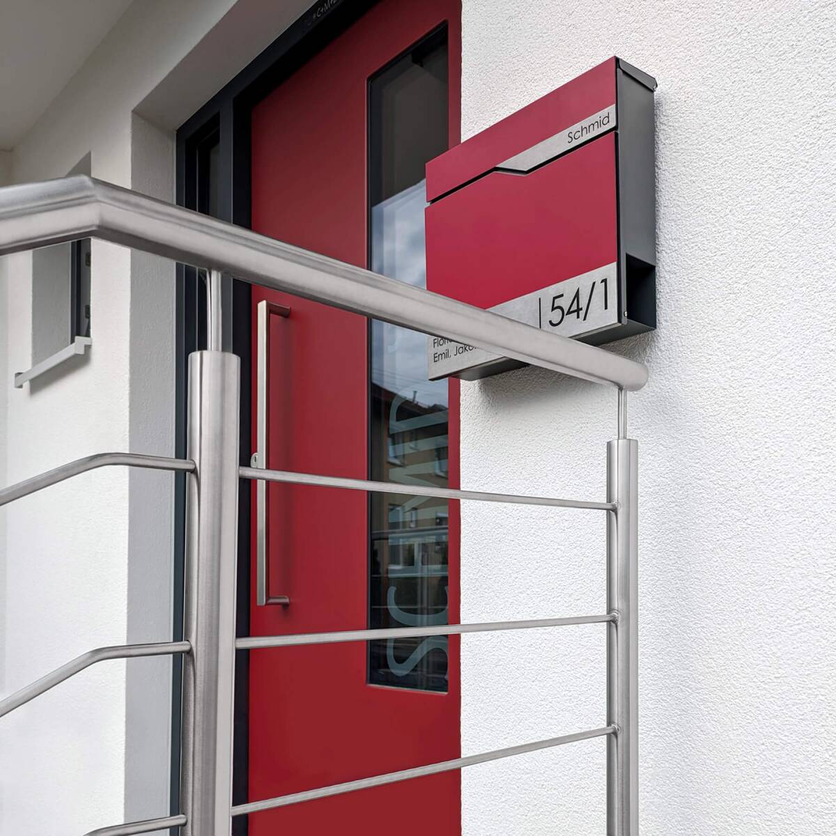 Cette boîte aux lettres est fabriquée en acier massif de haute qualité. Pour la rendre encore plus résistante aux intempéries, l‘acier est revêtu minutieusement en poudre après l’adresse et le nom ont été gravés par laser. Il est donc garanti que votre boîte aux lettres ne doit craindre ni le vent, ni la pluie.
