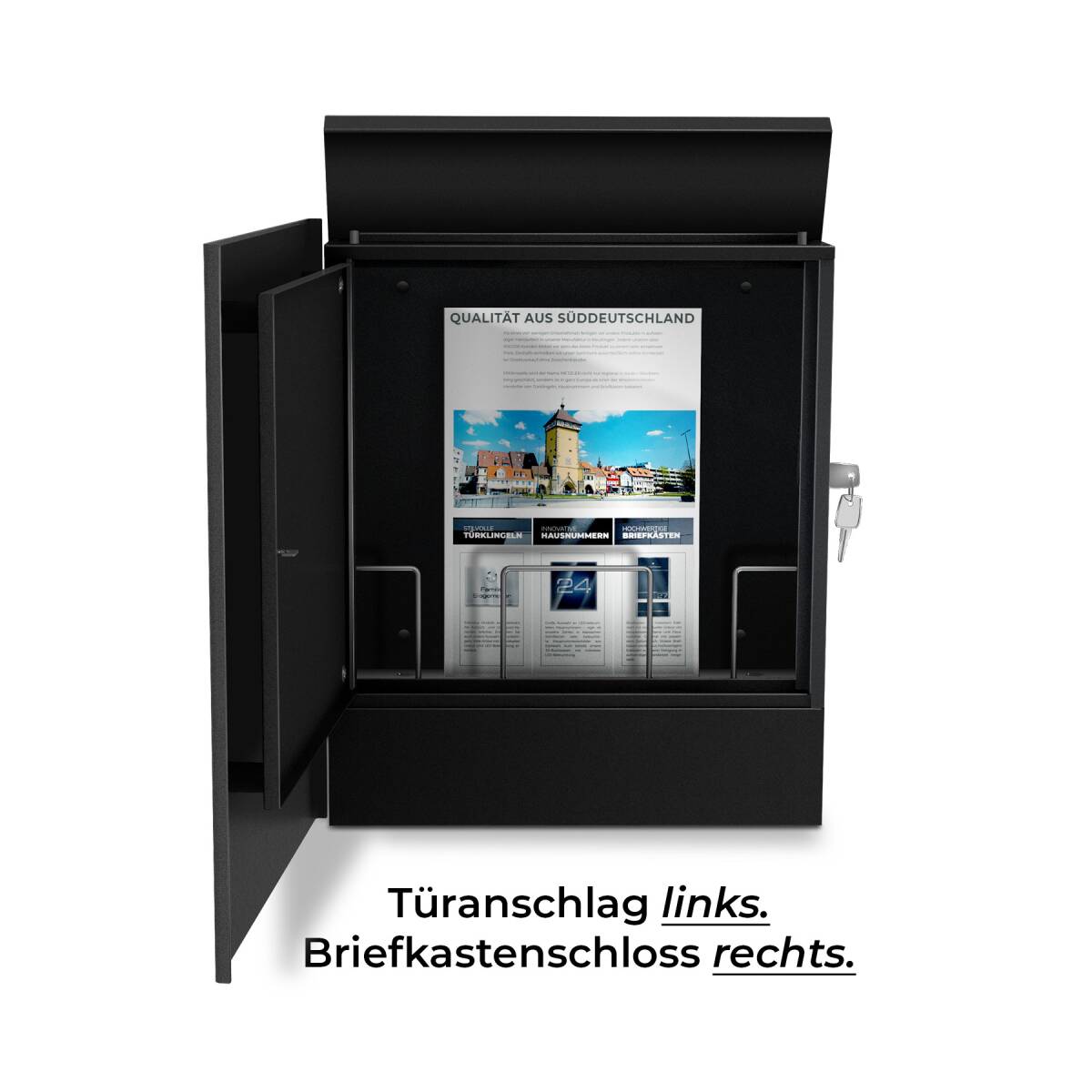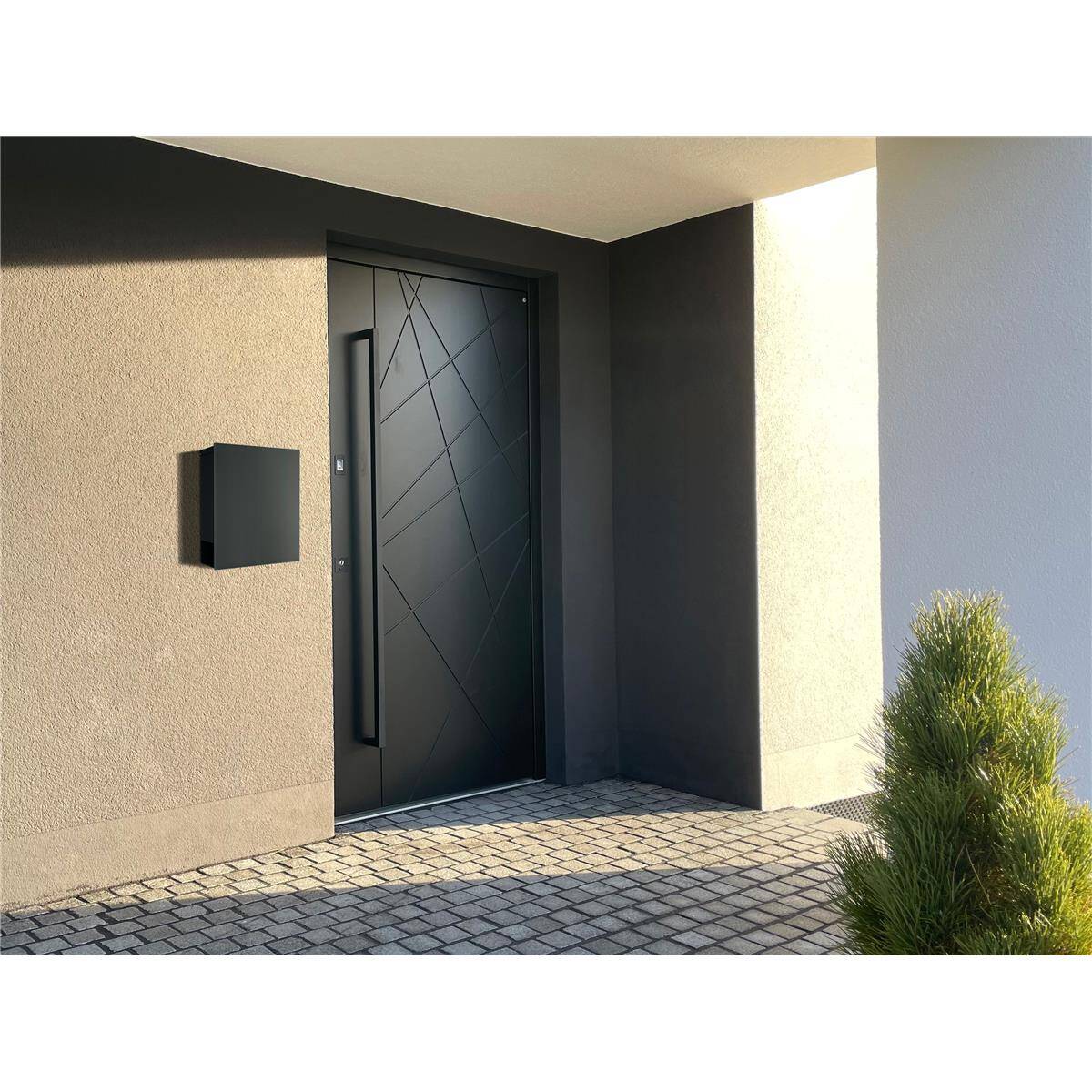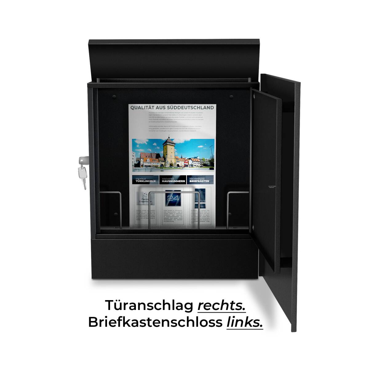 La boîte aux lettres artisanale intemporelle de la série Lepo de Metzler avec compartiment pour des journaux intégré, charnière de porte réglable et panneau frontal remplaçable est la boîte de choix pour des maisons individuelles ou des sites commerciaux modernes.