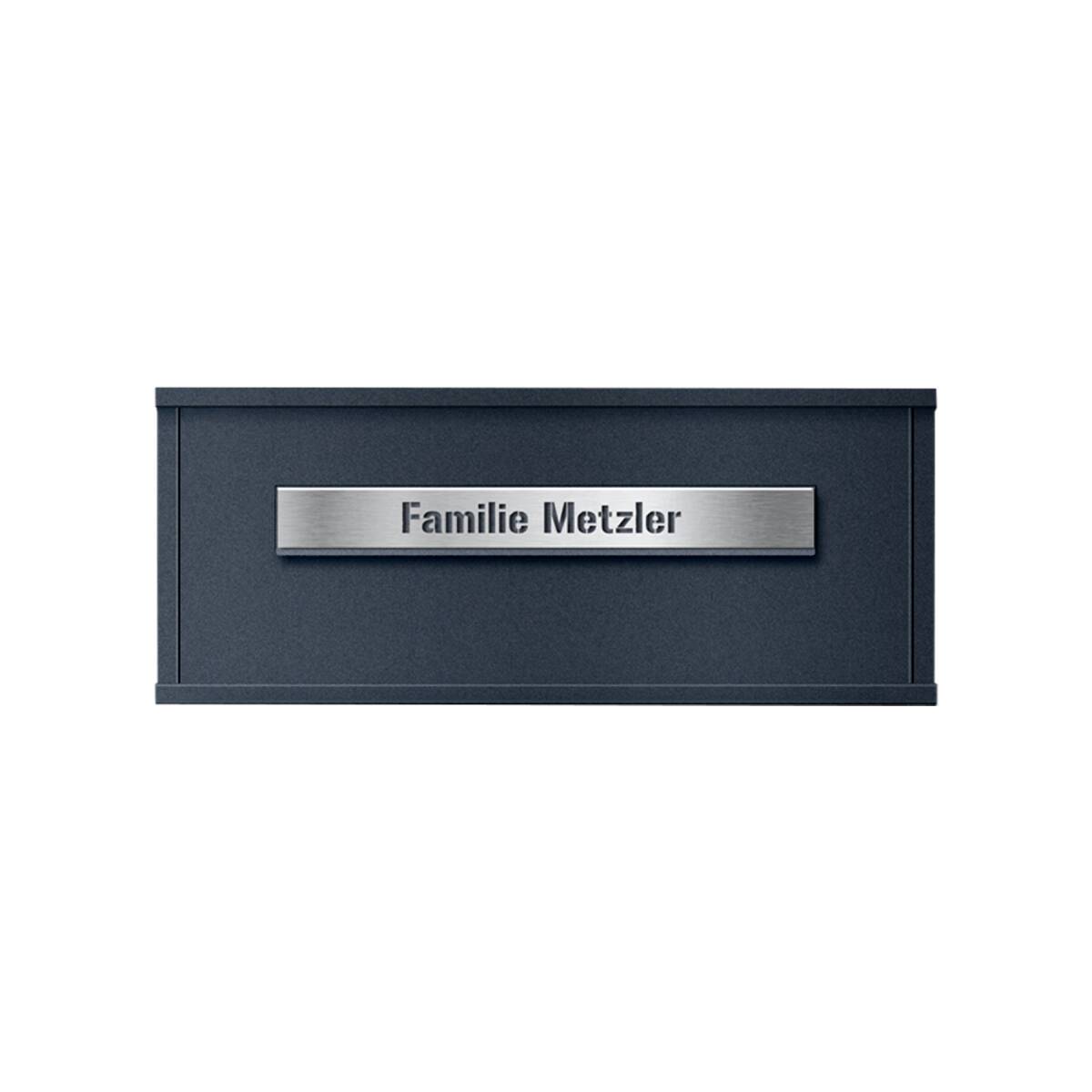 Das Brieffach wird individuell graviert. Die Gravur erfolgt auf einer rostfreien Edelstahlplatte.