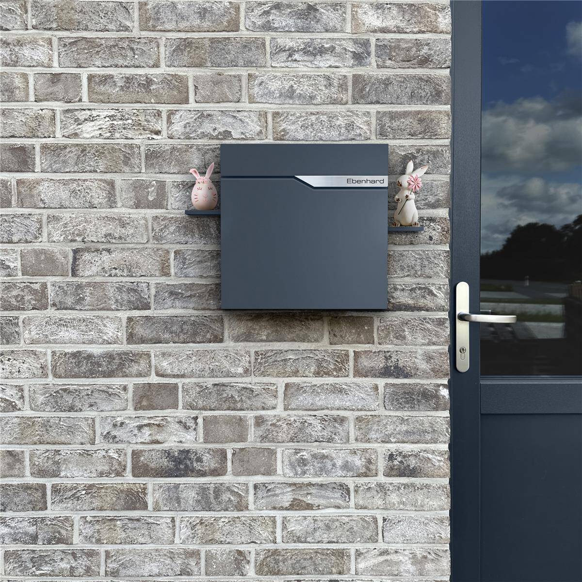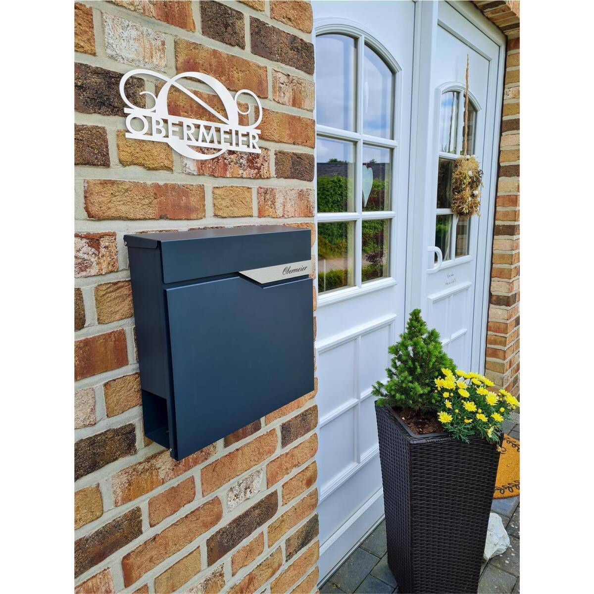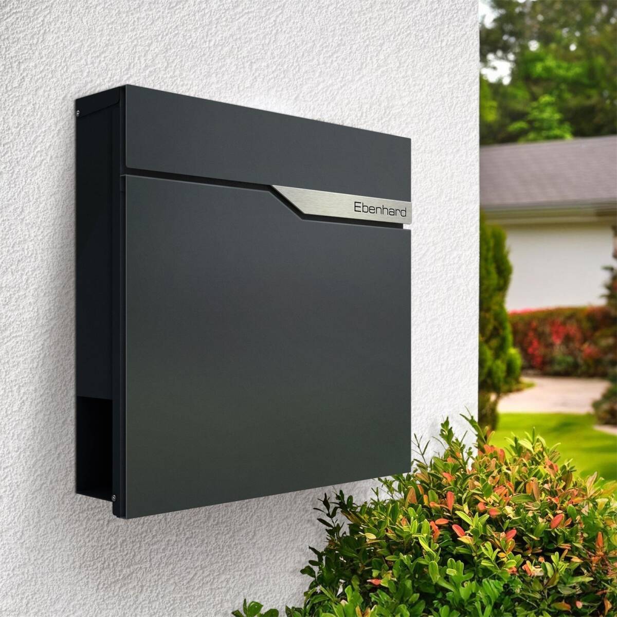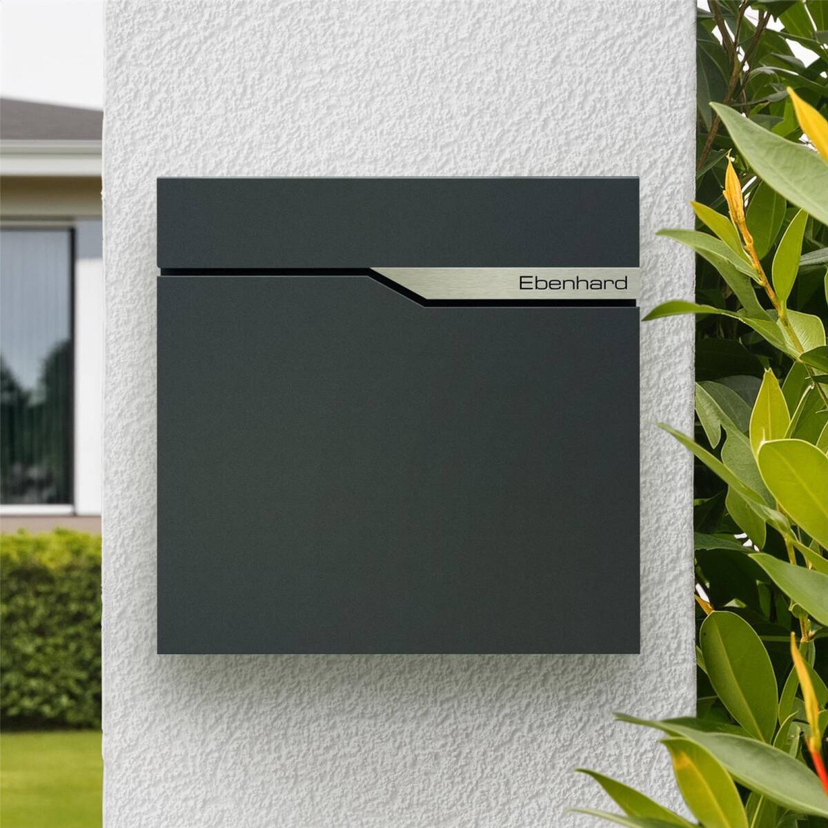 Moderner Briefkasten Ebenhard in Anthrazit mit selbstklebendem Edelstahlschild