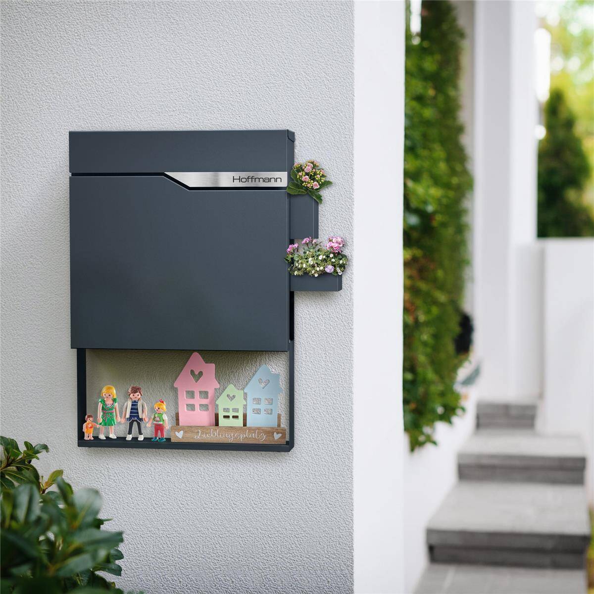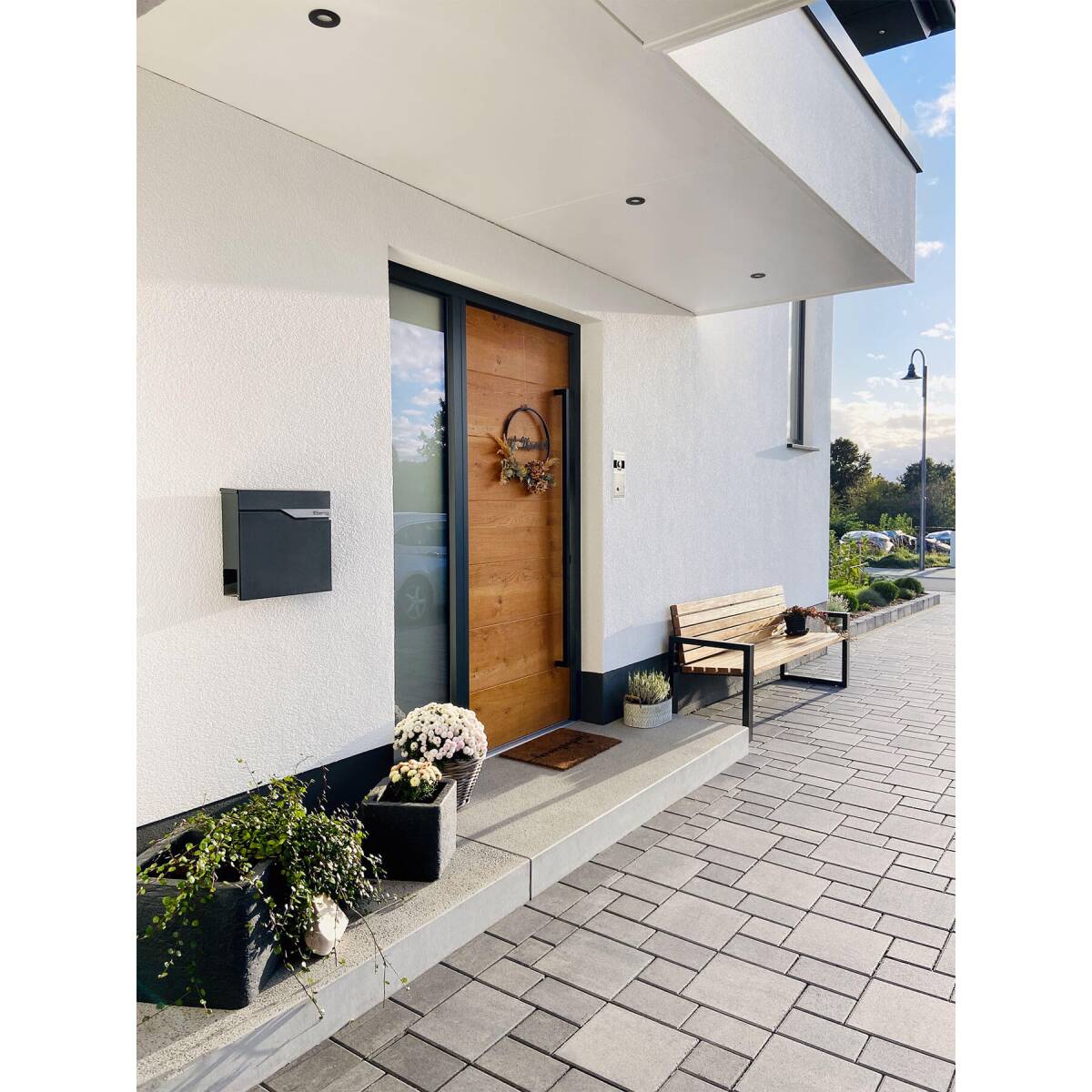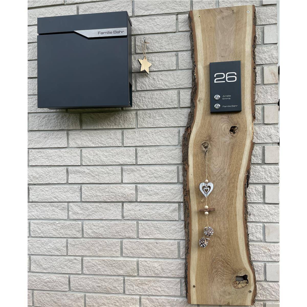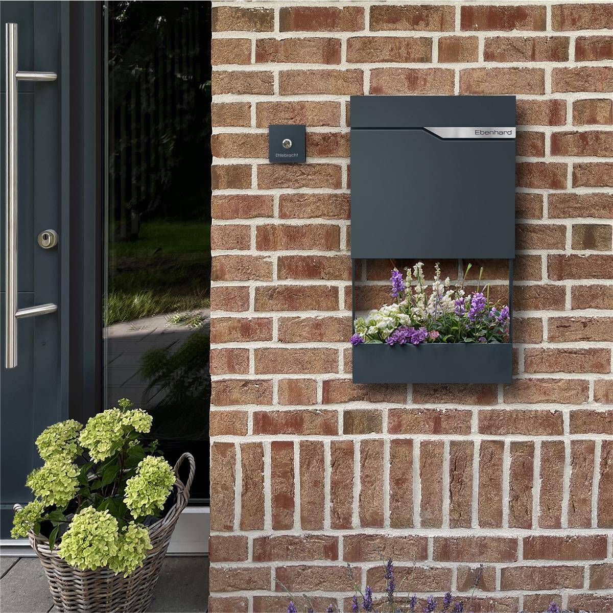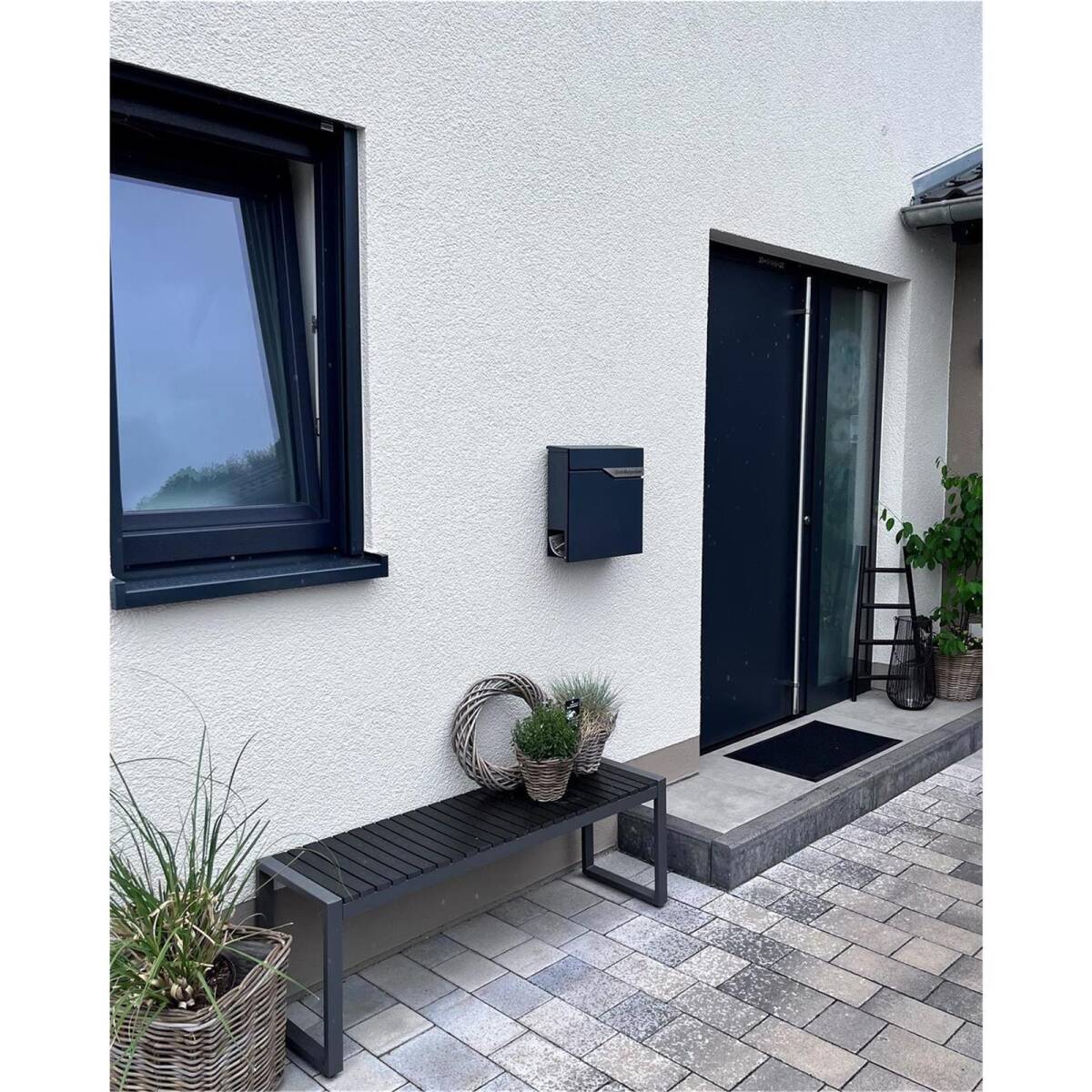 Moderner Briefkasten Ebenhard in Anthrazit mit selbstklebendem Edelstahlschild