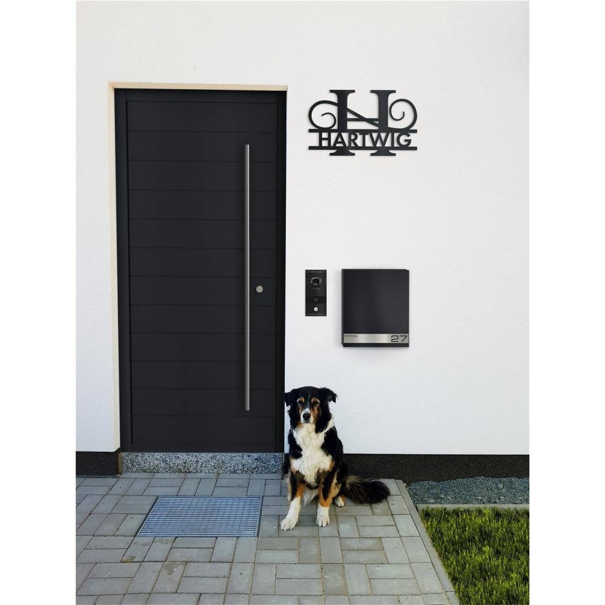 Die Edelstahlleiste bietet einen schönen Kontrast zum anthrazitgrauen Hintergrund. Mit dieser hochwertigen und intelligenten Lösung heben Sie sich stilvoll von Ihren Nachbarn ab und sorgen für einen echten Hingucker in Ihrem Eingangsbereich.