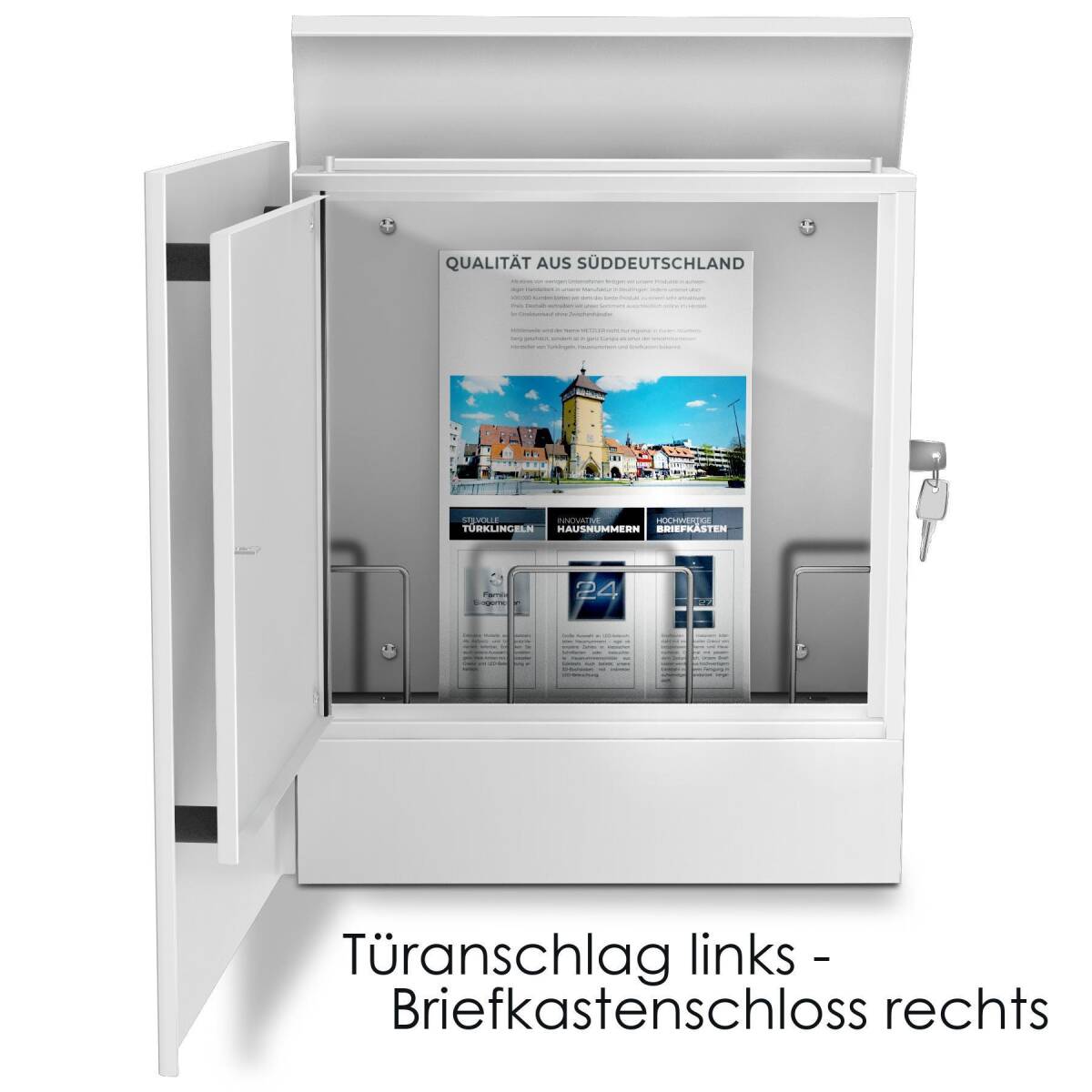- Große Post-Einwurfklappe: So können auch DIN A4 Umschläge problemlos eingeworfen werden.