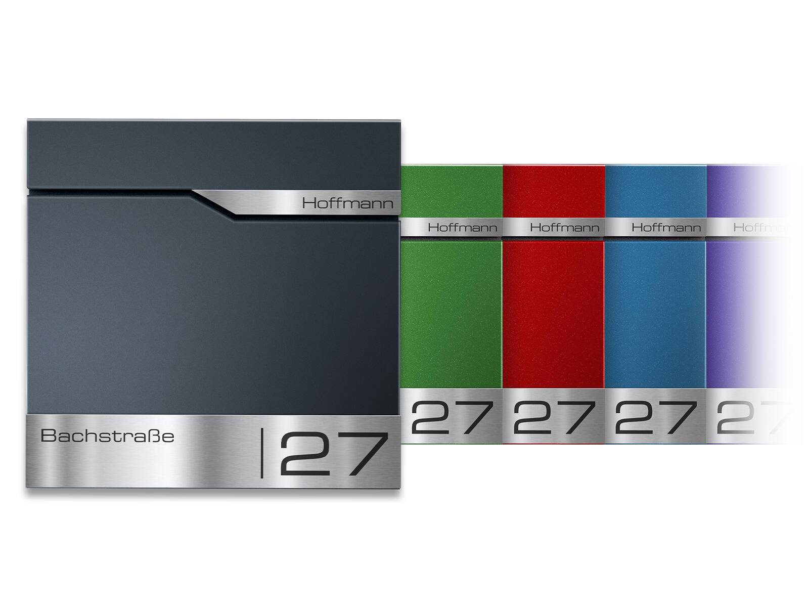 Besonders die Gravurleisten aus rostfreiem Edelstahl stechen bei diesem Briefkastenmodell hervor. Auf dem oberen, selbstklebenden Schild können Sie Ihren Namen eingravieren lassen. Die zweite Edelstahlblende lässt sich mit dem Straßennamen und der Hausnummer versehen. Hierfür können Sie sich zwischen zwanzig auserwählten Schriftarten entscheiden und so Ihrem Briefkasten einen individuellen Touch verleihen. Und sollte es zu Änderungen kommen, können Sie das Namensschild jederzeit problemlos mit dem Ersatzschild bei uns austauschen (Artikelnummer 28699).