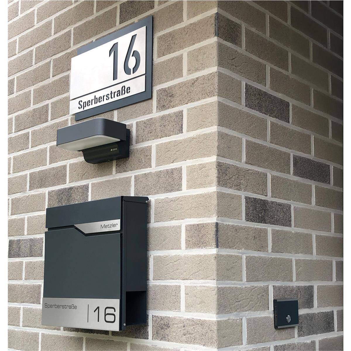 Der Briefkasten besticht durch die professionelle Lasergravur und wird so zum Unikat. Seine Individualität und Langlebigkeit punkten gekonnt auf ganzer Linie: auch nach Jahren ist ein Verblassen oder Verwischen der Schrift ausgeschlossen. Solides Material aus pulverbeschichtetem Stahl machen unsere Metzler Briefkästen robust und absolut witterungsbeständig.