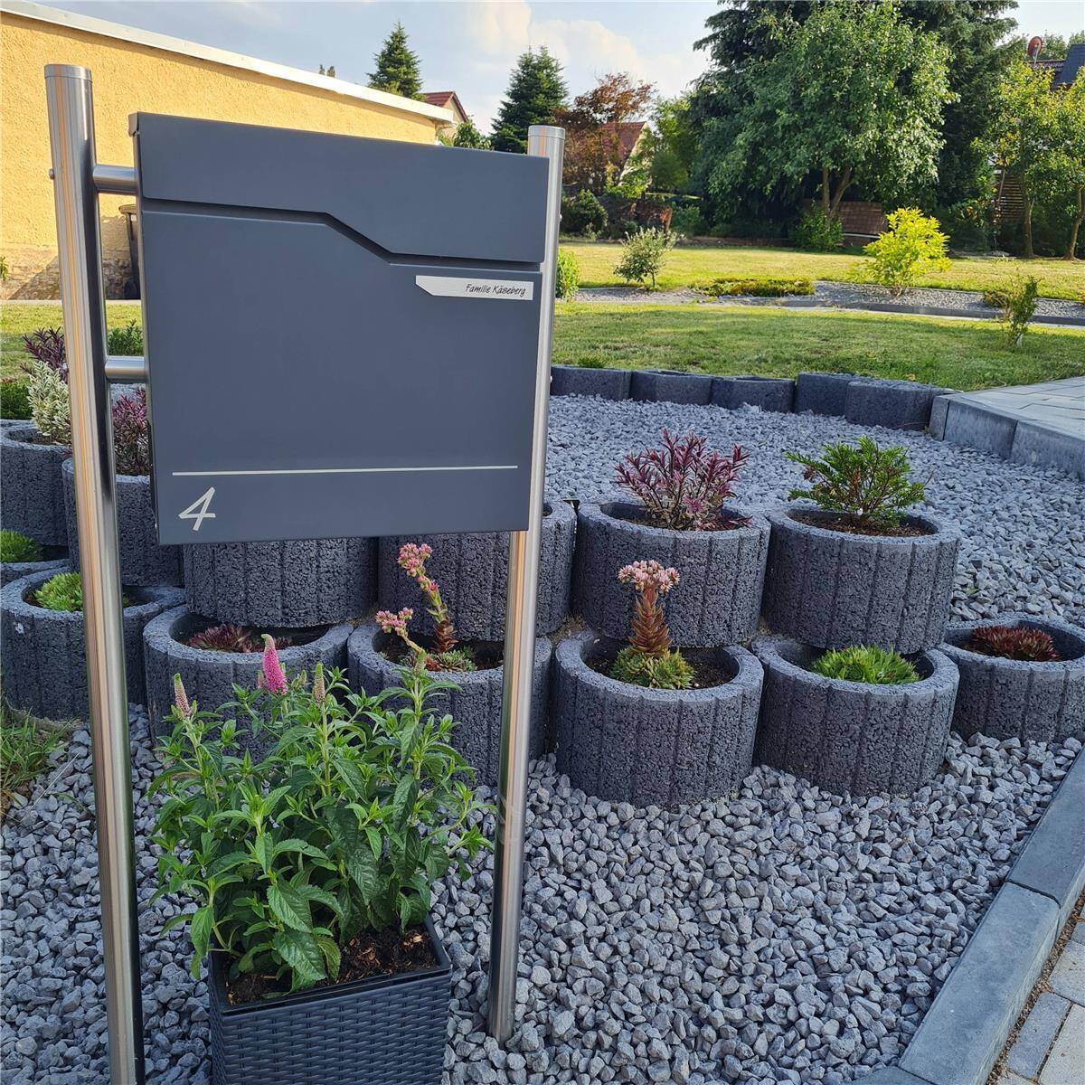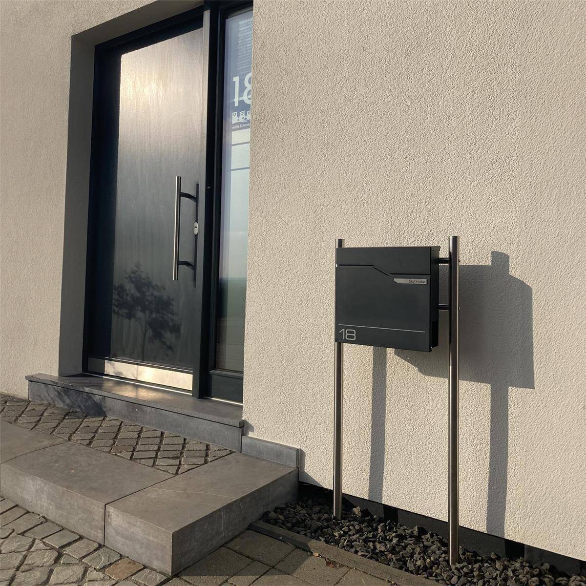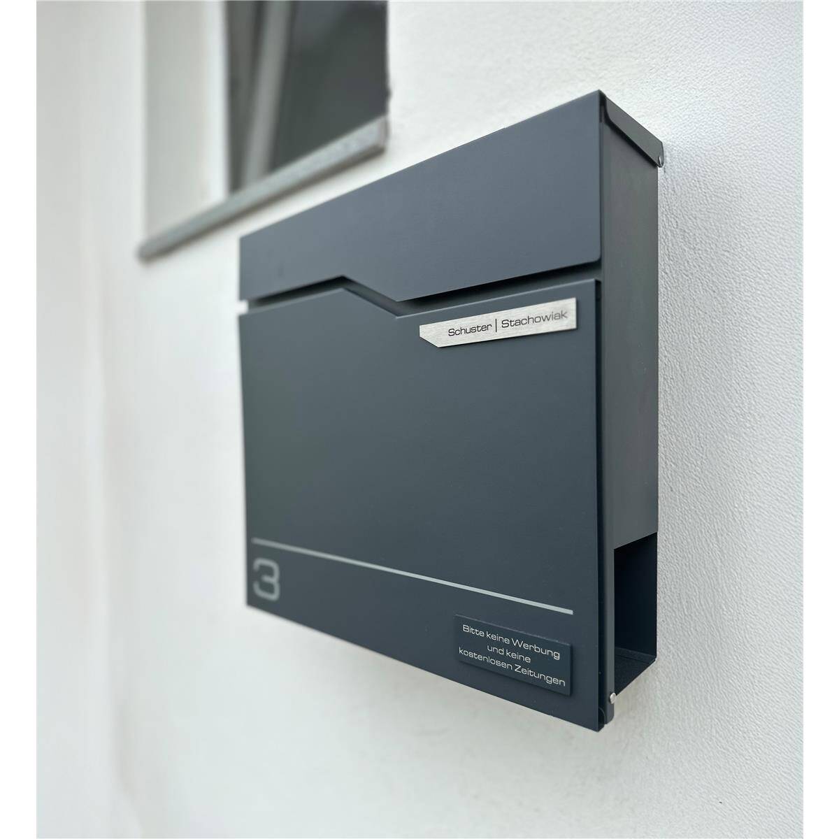 Briefkasten Hoffmann mit selbstklebendem Edelstahlschild & gravierter Hausnummer