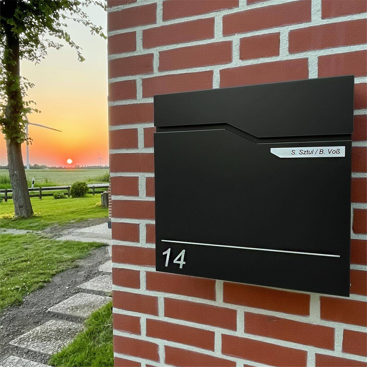 Briefkasten Hoffmann mit selbstklebendem Edelstahlschild & gravierter Hausnummer