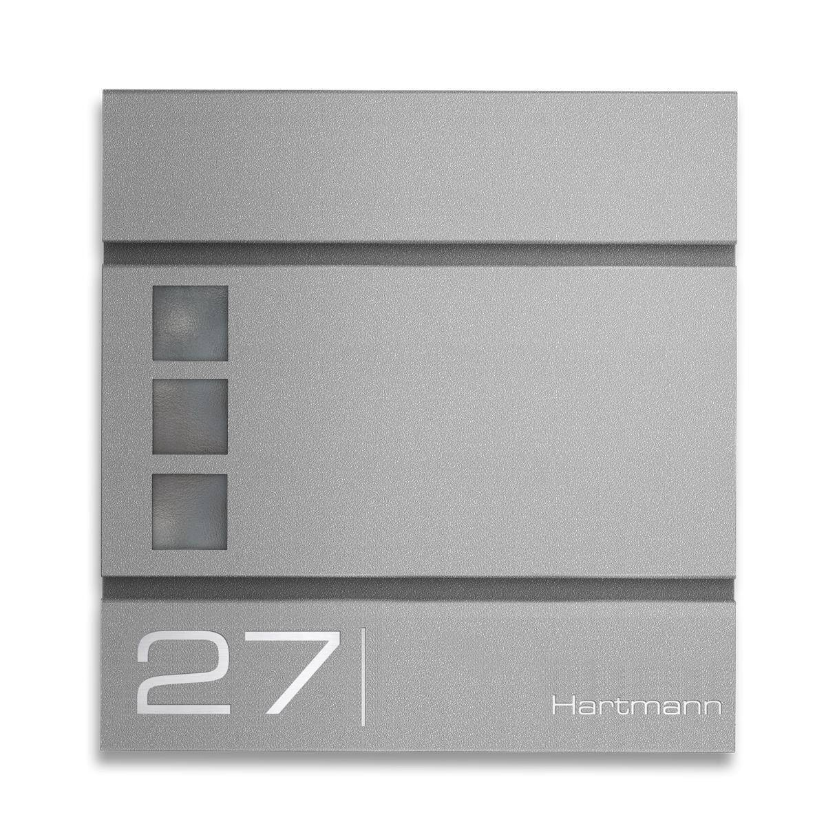 Der Briefkasten besticht durch die professionelle Lasergravur und wird so zum Unikat. Seine Individualität und Langlebigkeit punkten gekonnt auf ganzer Linie: auch nach Jahren ist ein Verblassen oder Verwischen der Schrift ausgeschlossen. Dank der drei praktischen Sichtfenster sehen Sie immer sofort, ob Sie neue Post im Briefkasten haben. Solides Material aus pulverbeschichtetem Stahl machen unsere Metzler Briefkästen robust und absolut witterungsbeständig.