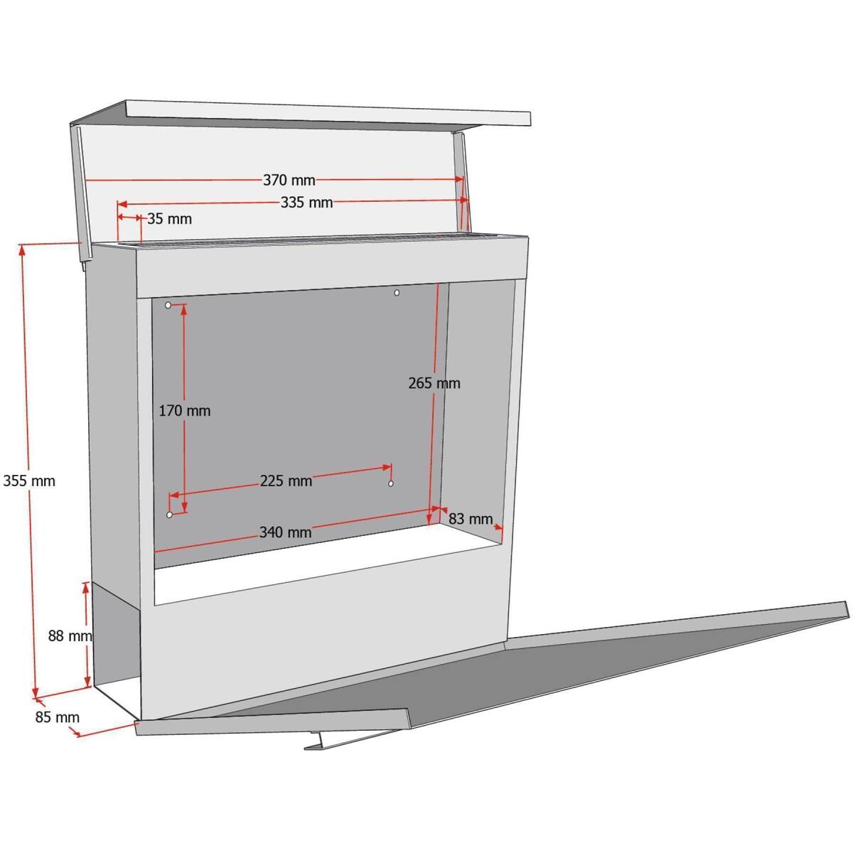 Abmessung Briefkasten inkl. Frame (Höhe x Breite x Tiefe):