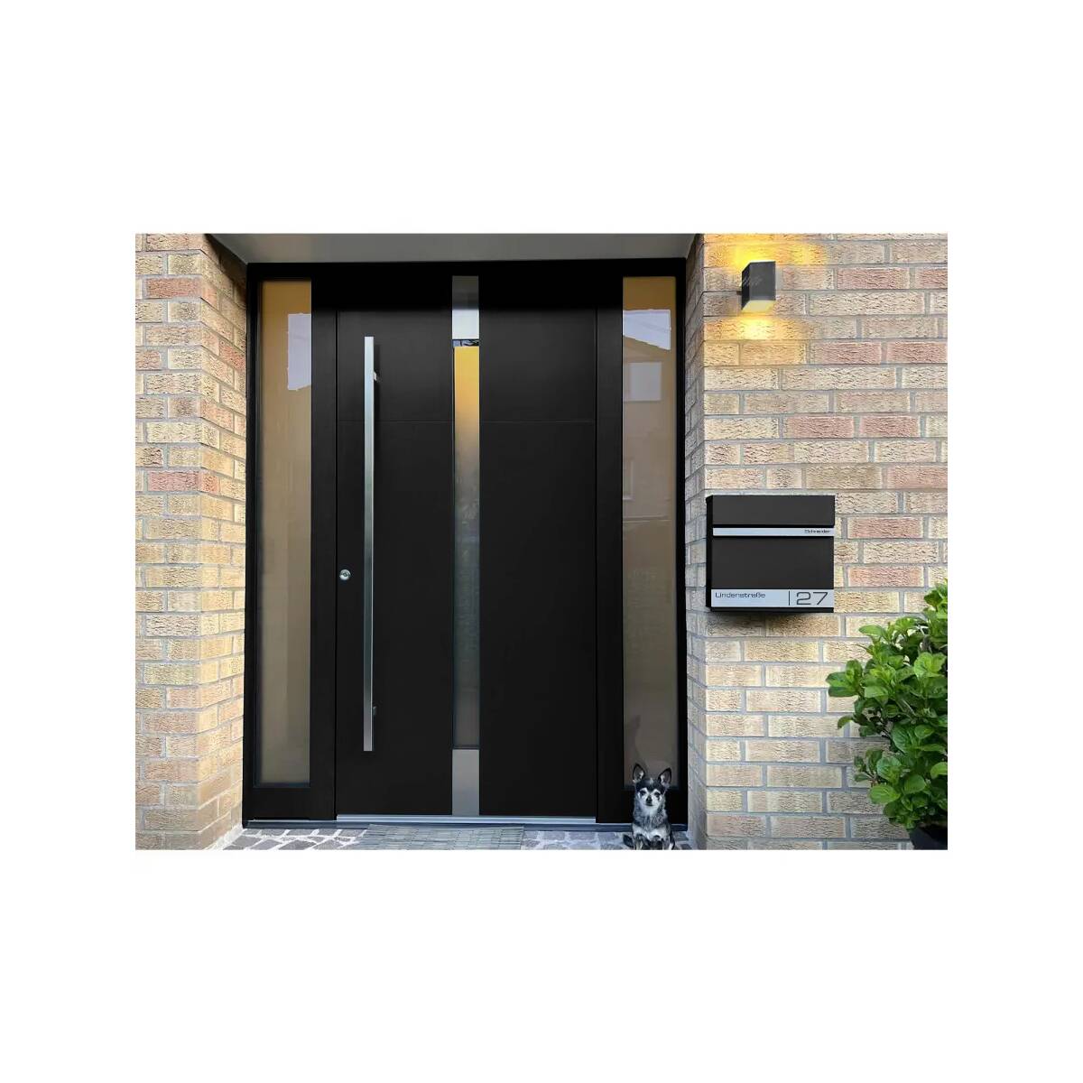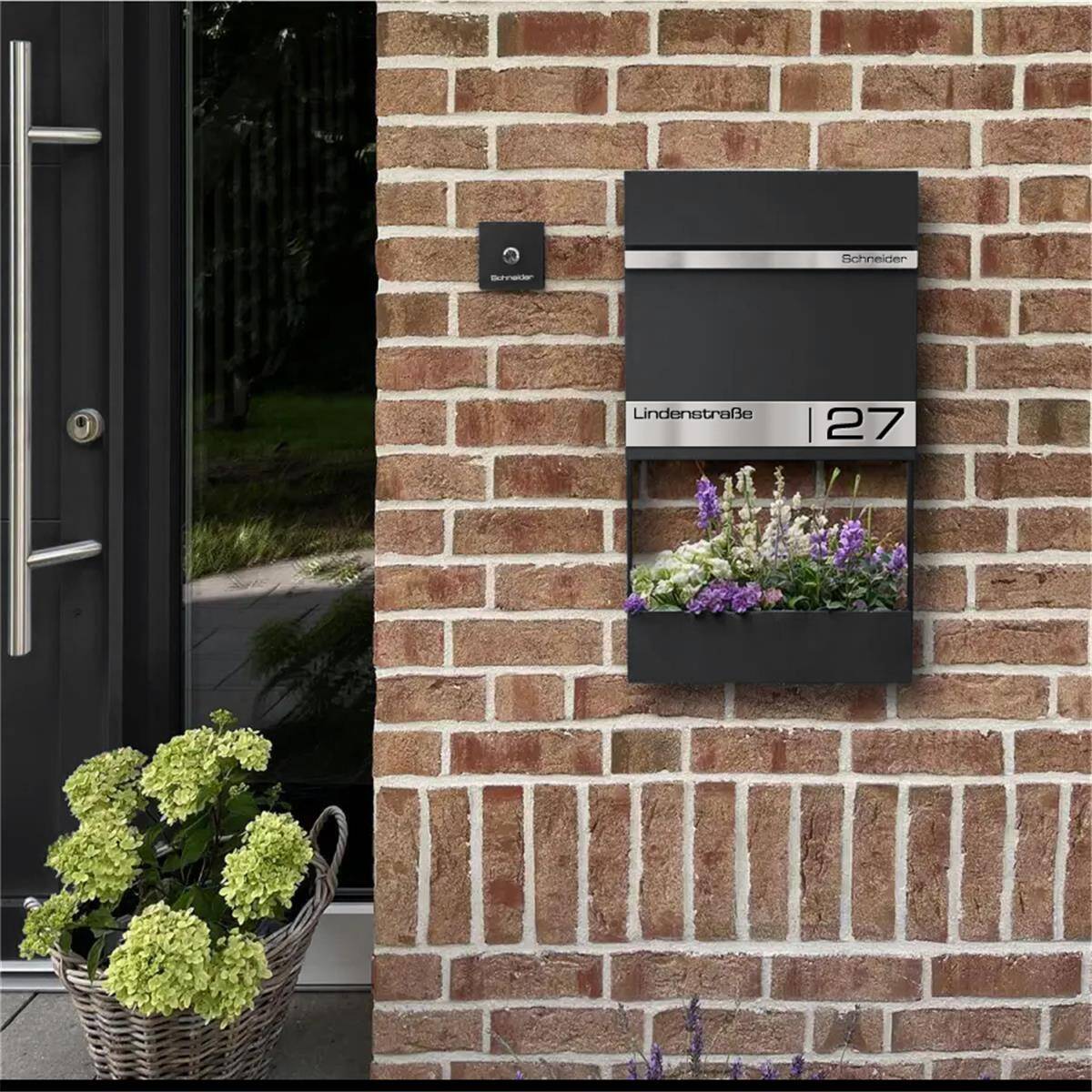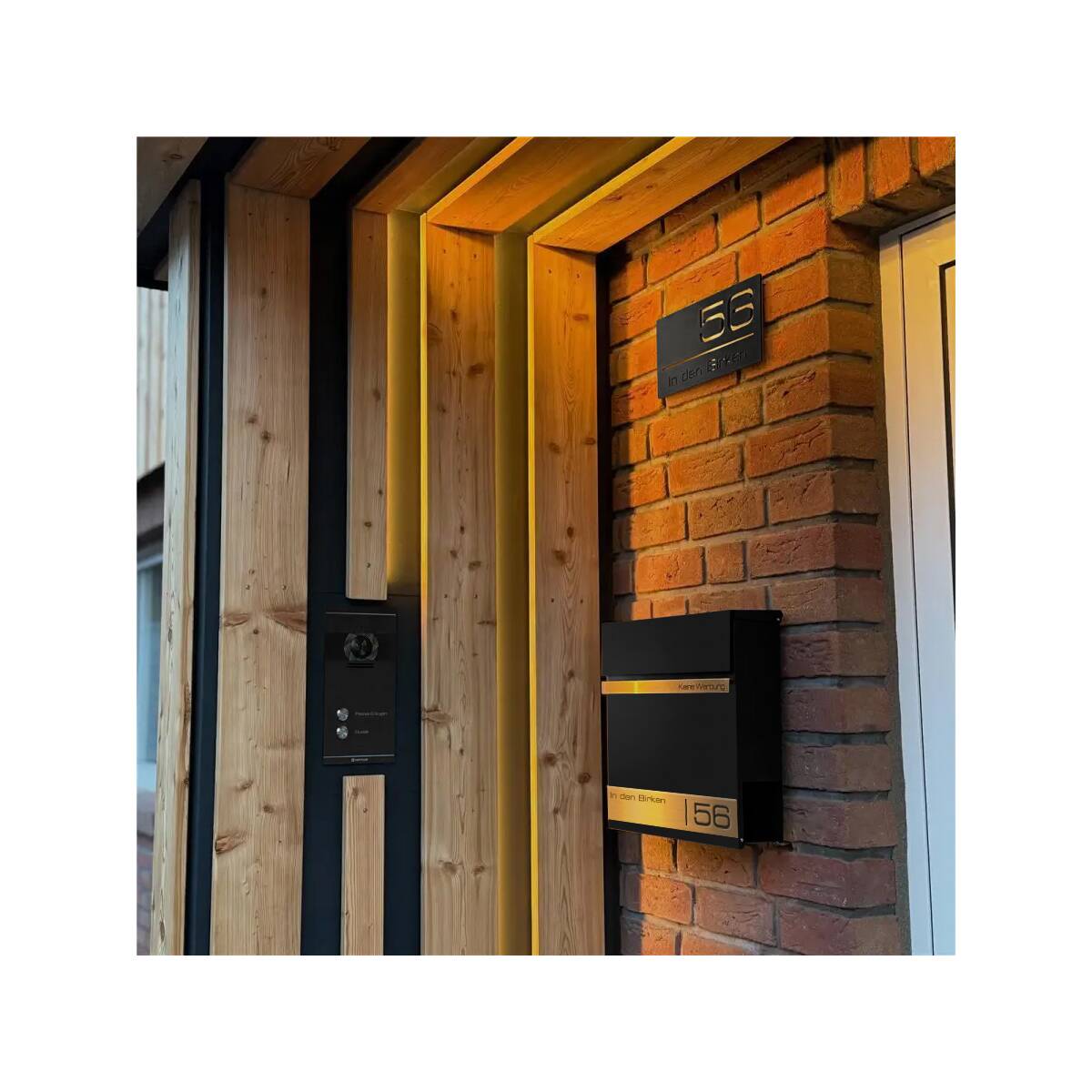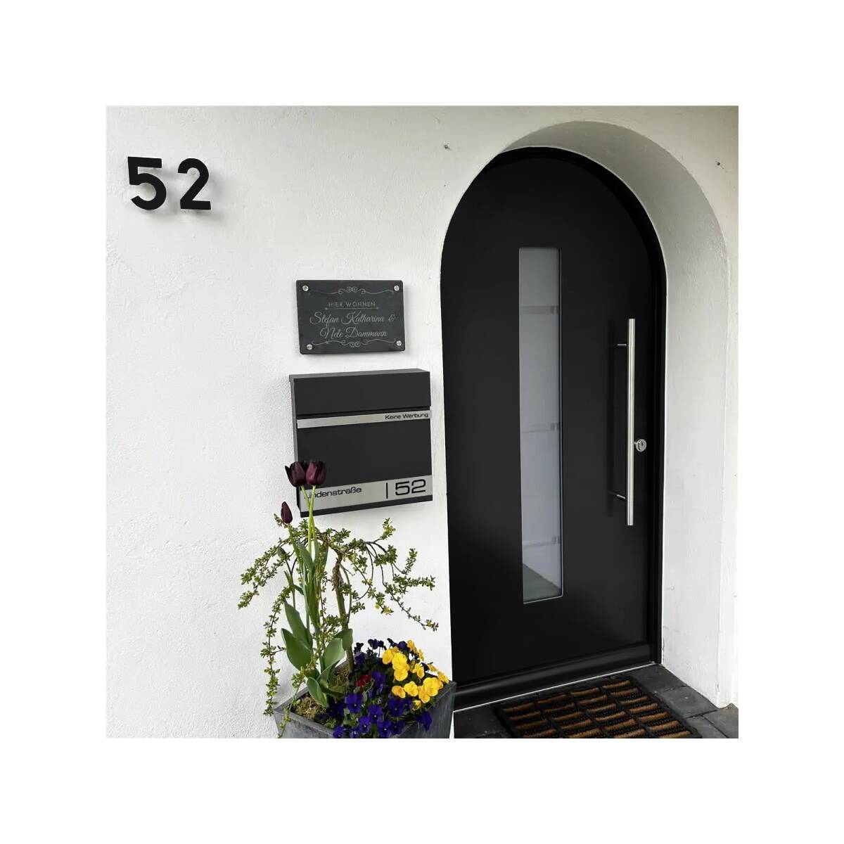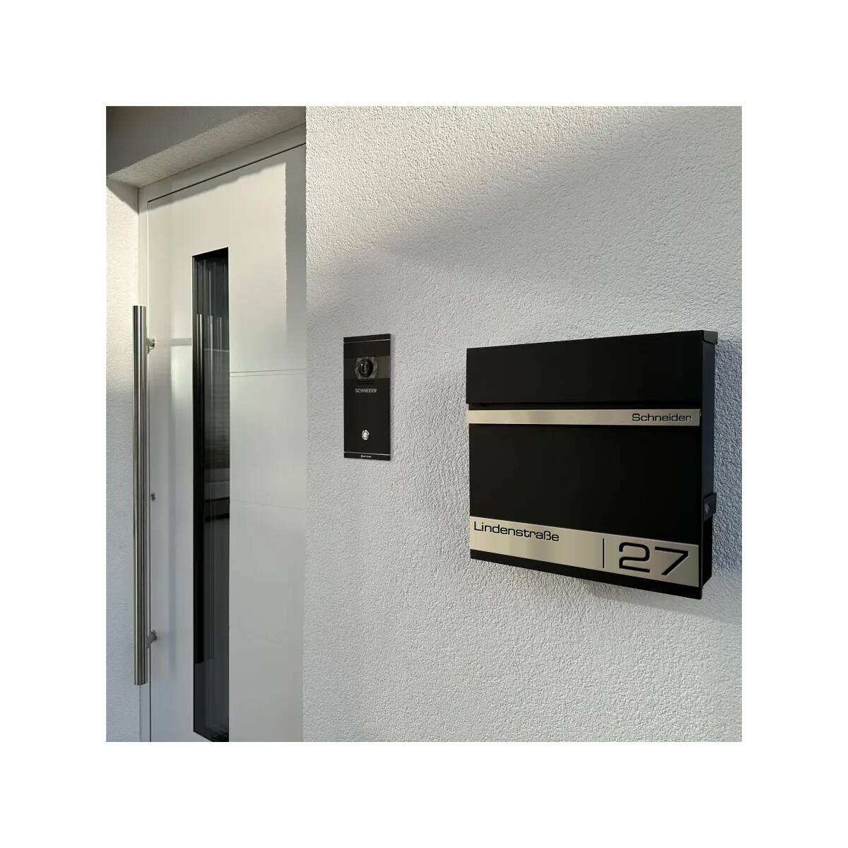 Als besonderes Highlight erhält der Briefkasten individuell personalisierbare Gravurleisten aus rostfreiem V4A Edelstahl, die Sie mit Ihrem Familiennamen und Ihrer Adresse Lasergravieren lassen können. Hierfür können Sie aus vielen modernen Schriftarten wählen und so Ihrem Briefkasten einen individuellen Touch verleihen.