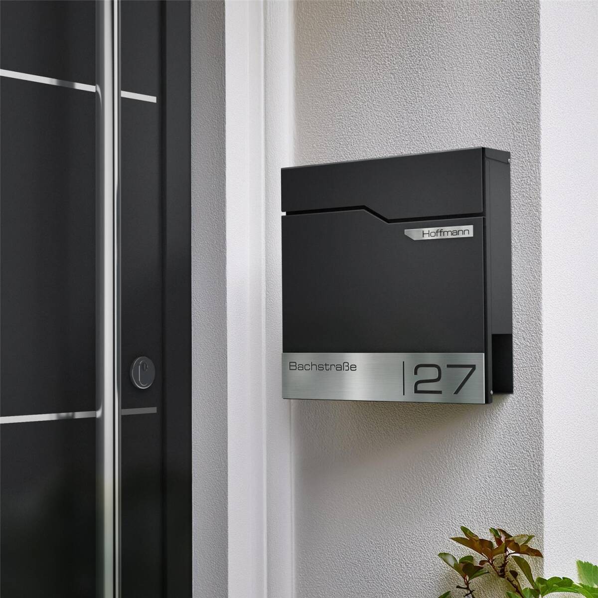 Der Briefkasten aus der Serie Hoffmann wurde aus hochwertigem, massivem Stahl hergestellt. Um den Briefkasten noch witterungsbeständiger zu gestalten, wird der Stahl nach dem Laserschnitt von Straße und Hausnummer aufwendig in RAL 9005 Tiefschwarz, Feinstruktur matt, pulverbeschichtet. So können dem Briefkasten weder Wind noch Wetter etwas anhaben.