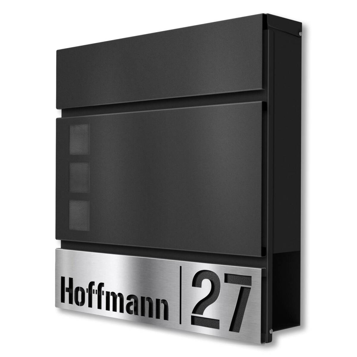 Metzler Briefkasten Svena mit Zeitungsfach, Sichtfenstern und individueller Lasergravur