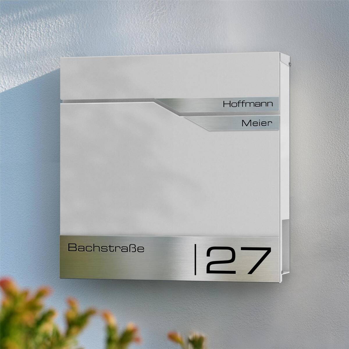 Briefkasten Albrecht mit Zeitungsfach und Edelstahlschildern