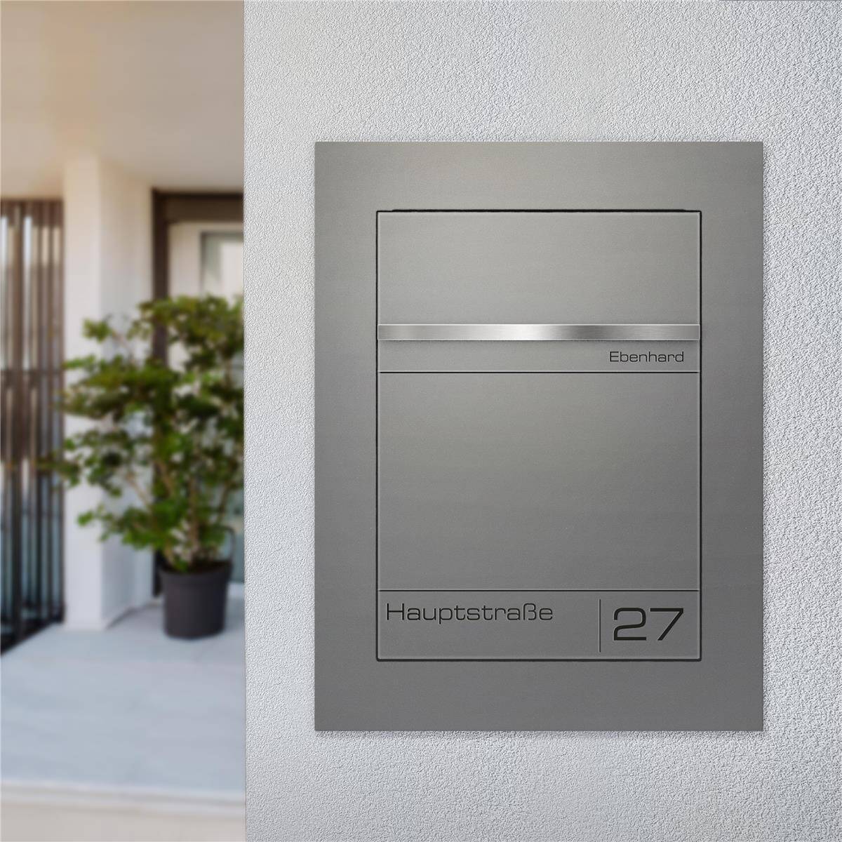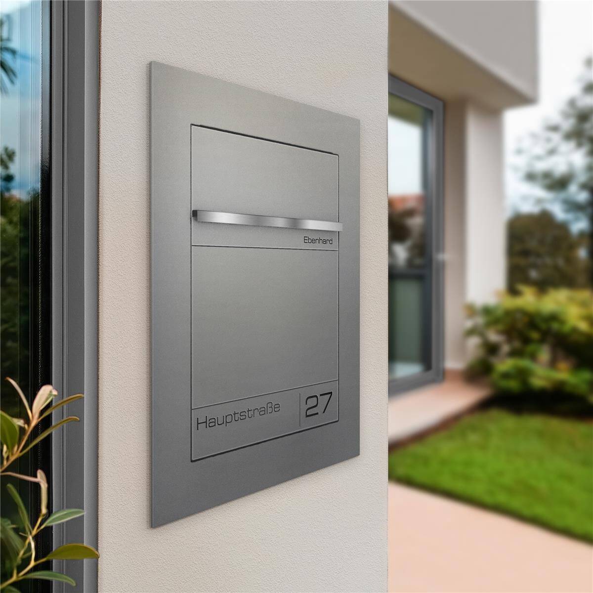 Metzler Unterputz Briefkasten mit Gravur in Grau | Hugo 2